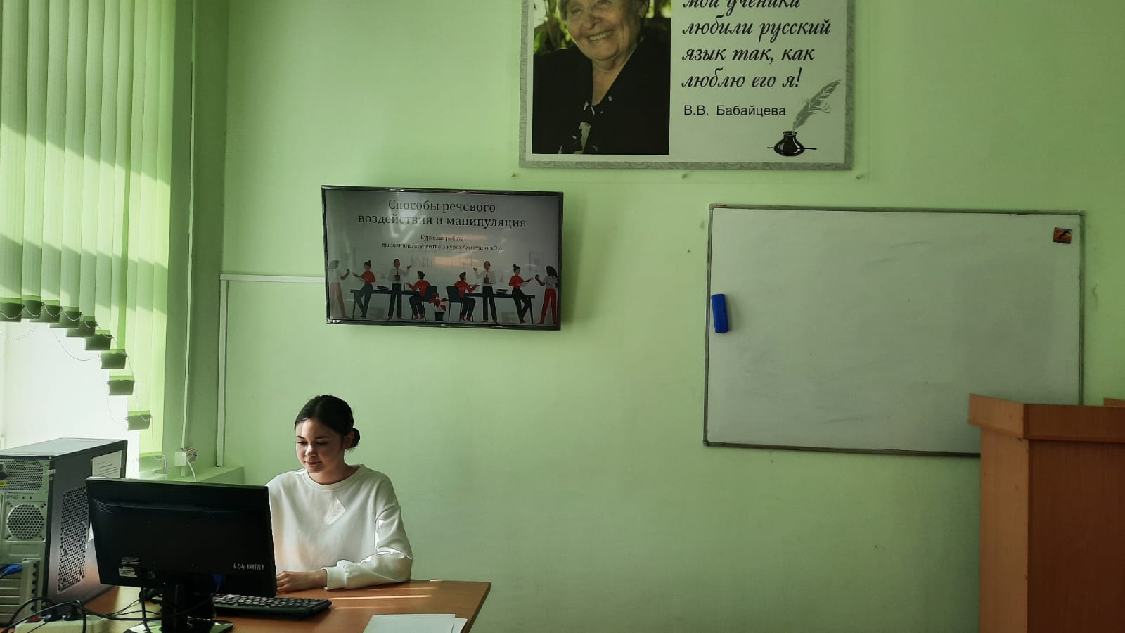 Хурматуллина С. С. поделилась итогами работы над КР по теме  «Приемы речевого воздействия в рекламе» (науч. руководитель – к.ф.н., доцент Косов А. Г.) .