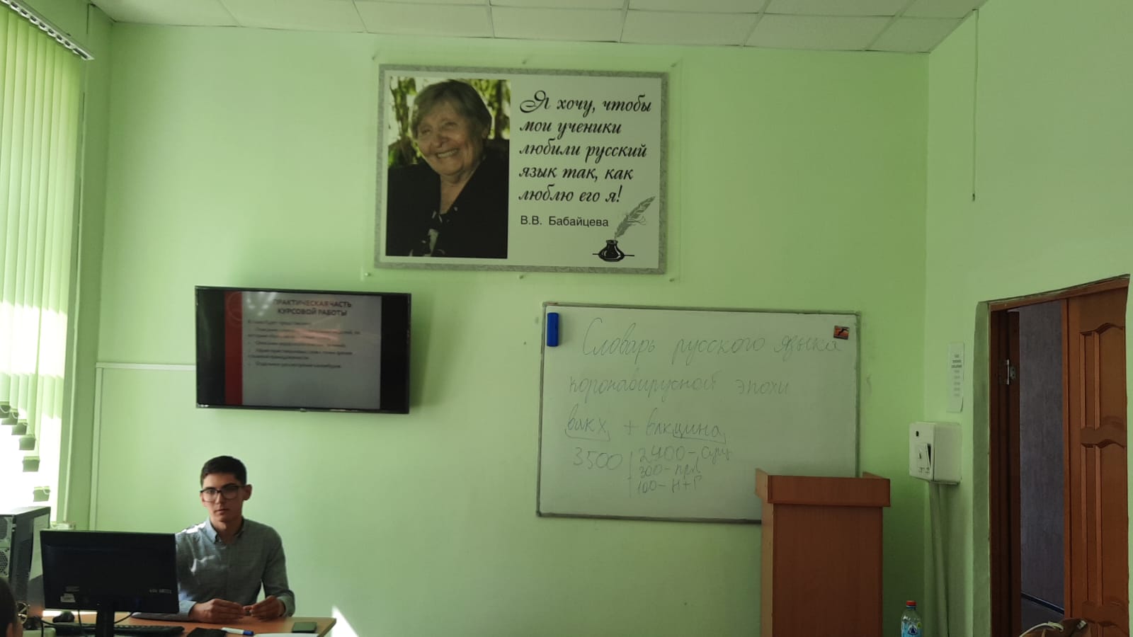 Шайхутдинов А. А. выступил по теме курсовой работы «Особенности словообразования имен существительных в современном русском языке (на материале «Словаря русского языка коронавирусной эпохи» (науч. руководитель – д.ф.н., профессор Артюшков И. В.). Докладчик в своем выступлении раскрыл основные положения аппарата введения, теоретические и практические аспекты исследования по теме.