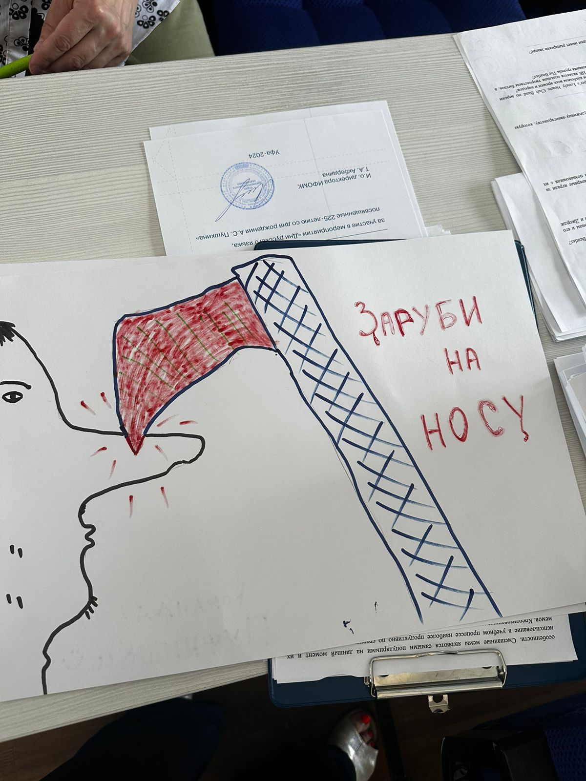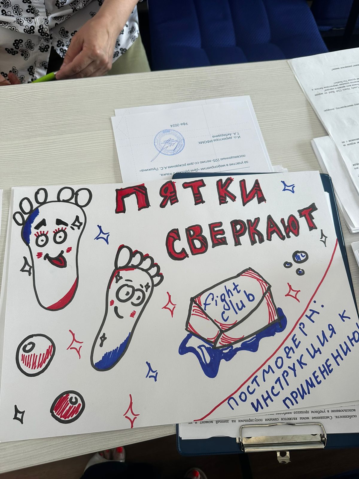 Участникам конкурса «Мемология» нужно было выполнить несколько заданий. Конкурсанты разгадывали мемы, исправляли их в соответствии с нормами русского языка, и даже нарисовали свой мем на основе русских фразеологизмов.