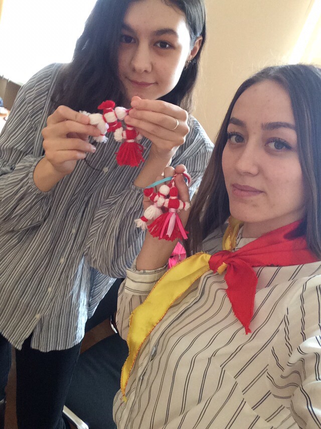 В Институте филологического образования и межкультурных коммуникаций уже по традиции приход весны встречают изготовлением мартениц - украшений из шерсти или ниток-мулине красного и белого цвета.     В этом году ИФОМК посетила исполнительный директор Болгарского культурного центра Татьяна Коробова, проведя для студентов 3 курса отделения отечественной филологии мастер-класс по изготовлению болгарских оберегов – мартениц. Татьяна Коробова также выступила с презентацией о национальном празднике Республики Болгария – 3 марта – Дне освобождения от Османского ига и об участии России в освободительной борьбе болгарского народа, рассказала о народных традициях встречи весны в Болгарии.  1 марта студенты 3 курса отделения отечественной филологии поздравили с началом весны первокурсников, подарили им мартенички и научили их изготавливать самим.