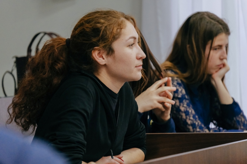 Студенты спрашивали о подвижном ударением в русском языке, интересовались, как  грамотно употреблять феминитивы в языках народов России. Одна из участниц встречи – Вера Кустова – написала стихотворение для участников автопробега и тем самым вошла в историю «Тотального путешествия», по итогам которого будет написана книга о городах-участниках «Тотального диктанта».