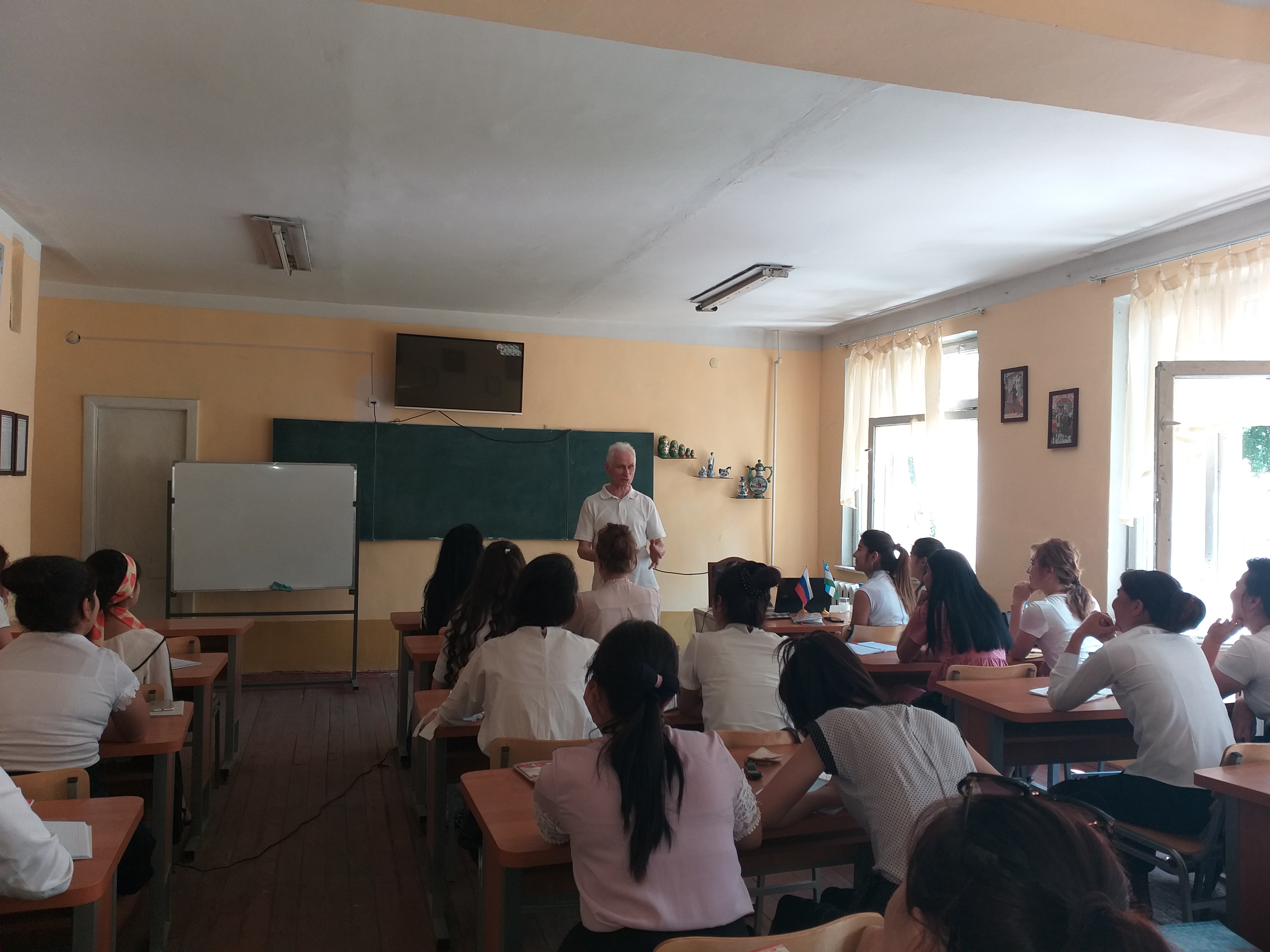 Параллельно с 16 по 21 мая со студентами 2 и 3 курсов профилей «Родной язык и литература (русский язык и литература)» факультета иностранных языков преподаватели БГПУ им. М. Акмуллы: заведующие кафедрами русского языка И.В. Артюшков и русской литературы В.В. Борисова, приглашенные ранее кокандской стороной, проводили интенсивные занятия с узбекскими студентами по русскому языку и литературе. Занятия вызвали у студентов большой интерес, поскольку их проводили носители русского языка и русской культуры, и оказались очень полезными как для преподавателей, так и для обучаемых.