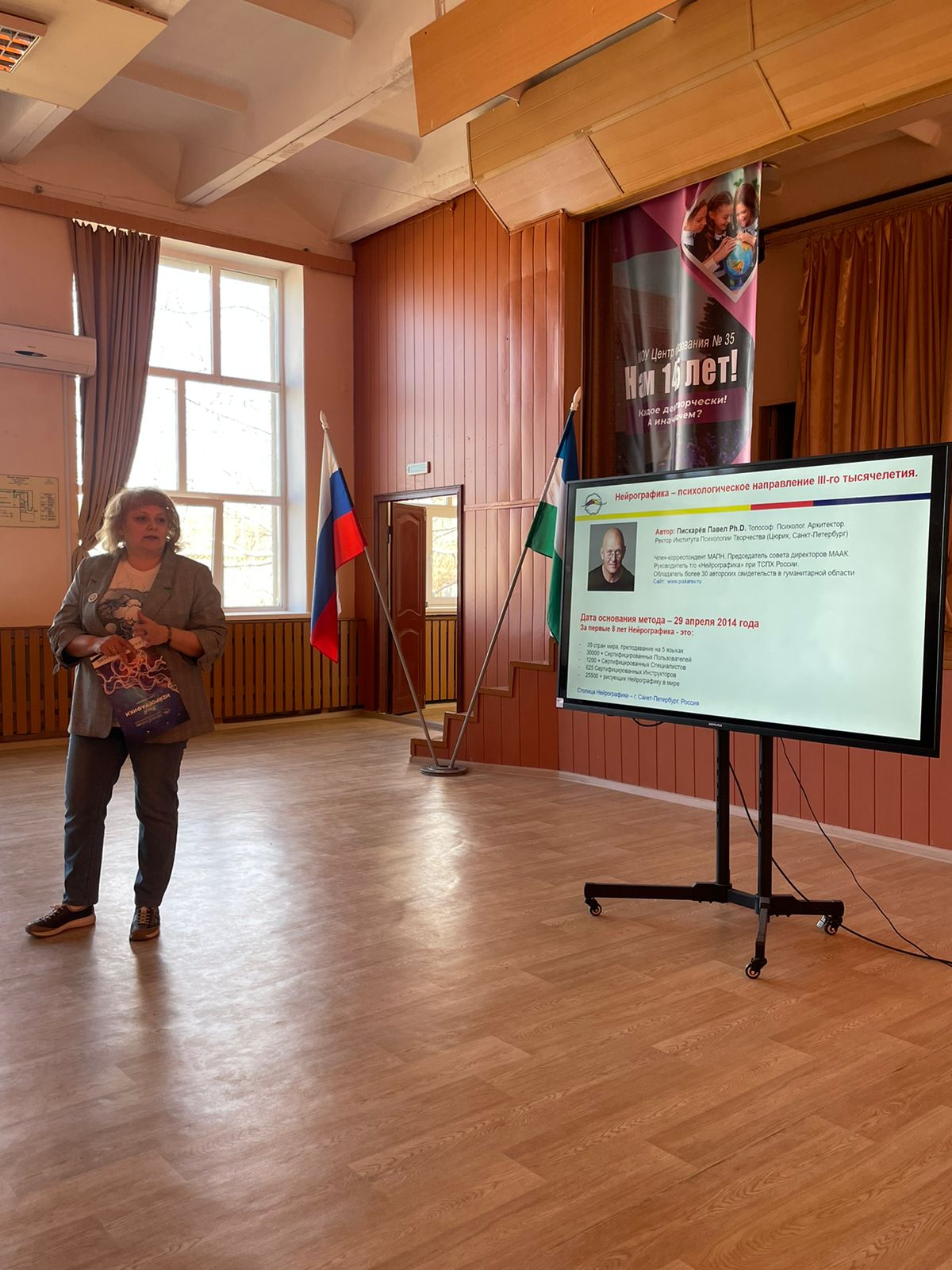 11 апреля прошел семинар для педагогов  Школы № 35 по теме «Как преодолеть профессиональное выгорание педагогу школы». Ольга Михайловна Макушкина, кандидат психологических наук, доцент кафедры возрастной и социальной психологии БГПУ им. М. Акмуллы, практикующий психолог, познакомила  с популярным сейчас методом работы.