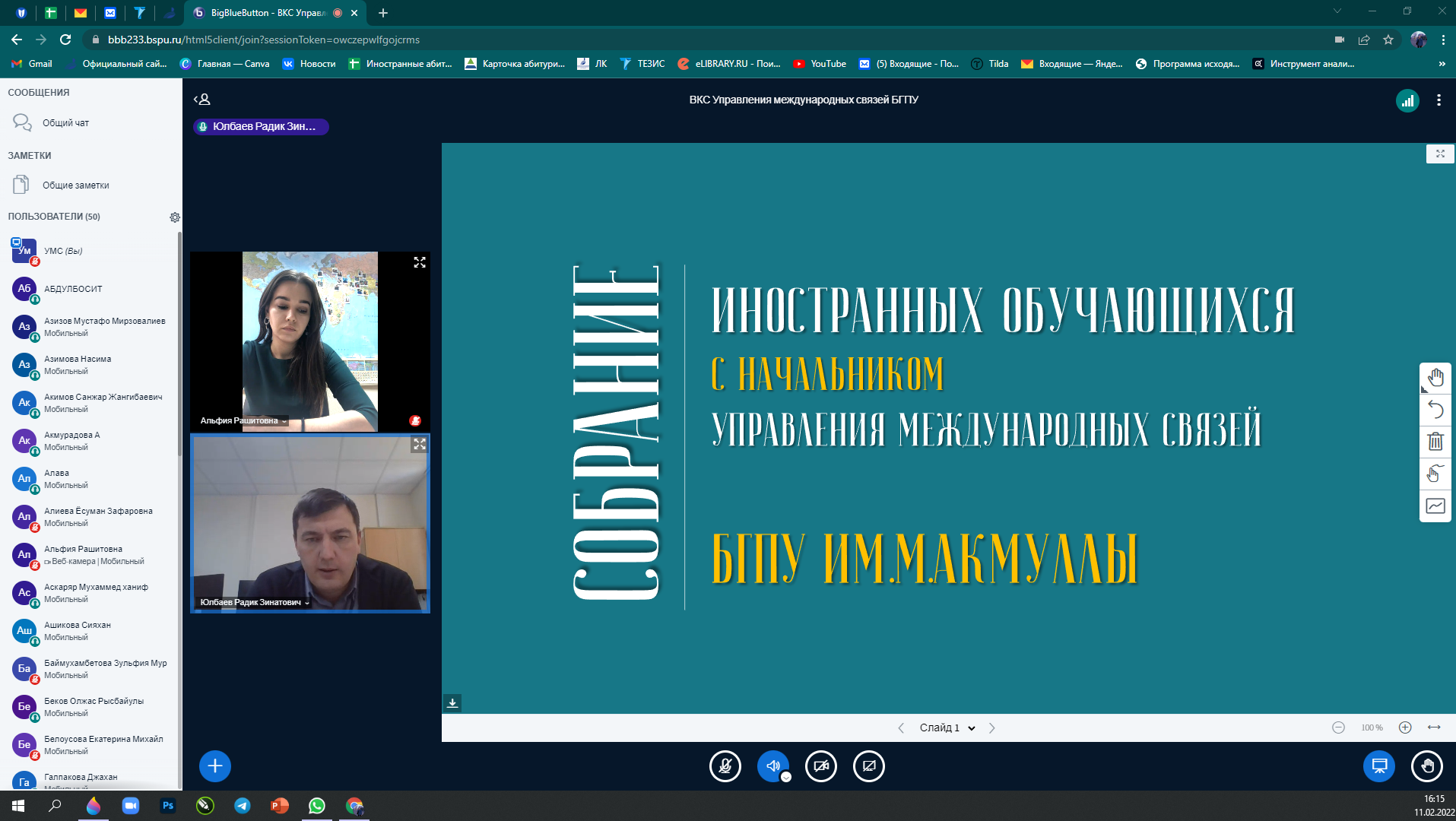 11 февраля 2022 года Управление международных связей БГПУ им. М. Акмуллы провело общевузовское собрание с иностранными обучающимися.