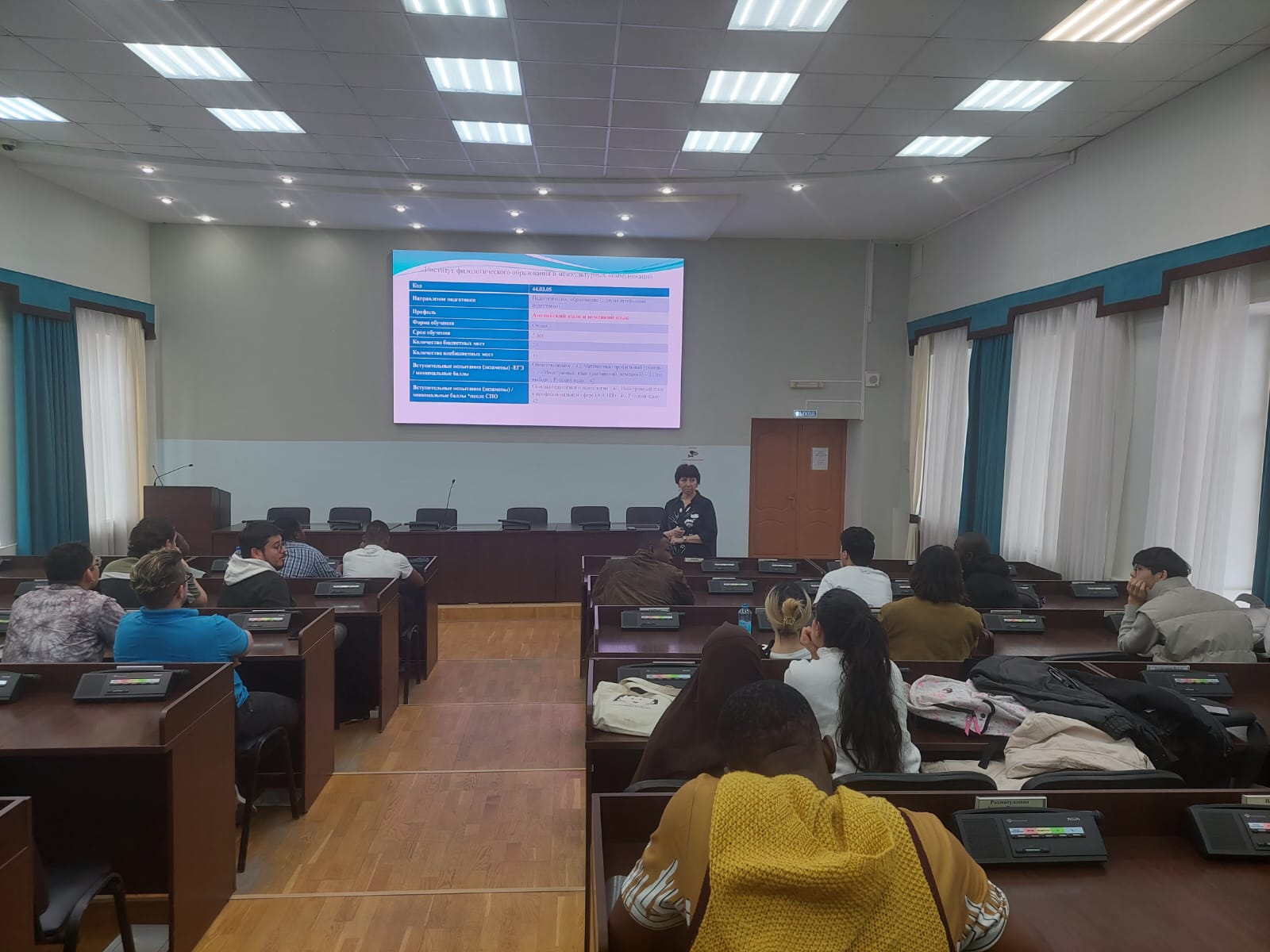 Неделя презентаций факультетов и институтов Акмуллинского университета для слушателей подготовительного отделения в рамках приёмной кампании 2025-2026 учебного года завершилась успешно. Все факультеты и институты представили подробную информацию о своих программах бакалавриата, магистратуры и аспирантуры, показали иностранцам лекционные и учебные аудитории со специальным оборудованием, аудитории для формирования у студентов профессиональных компетенций.