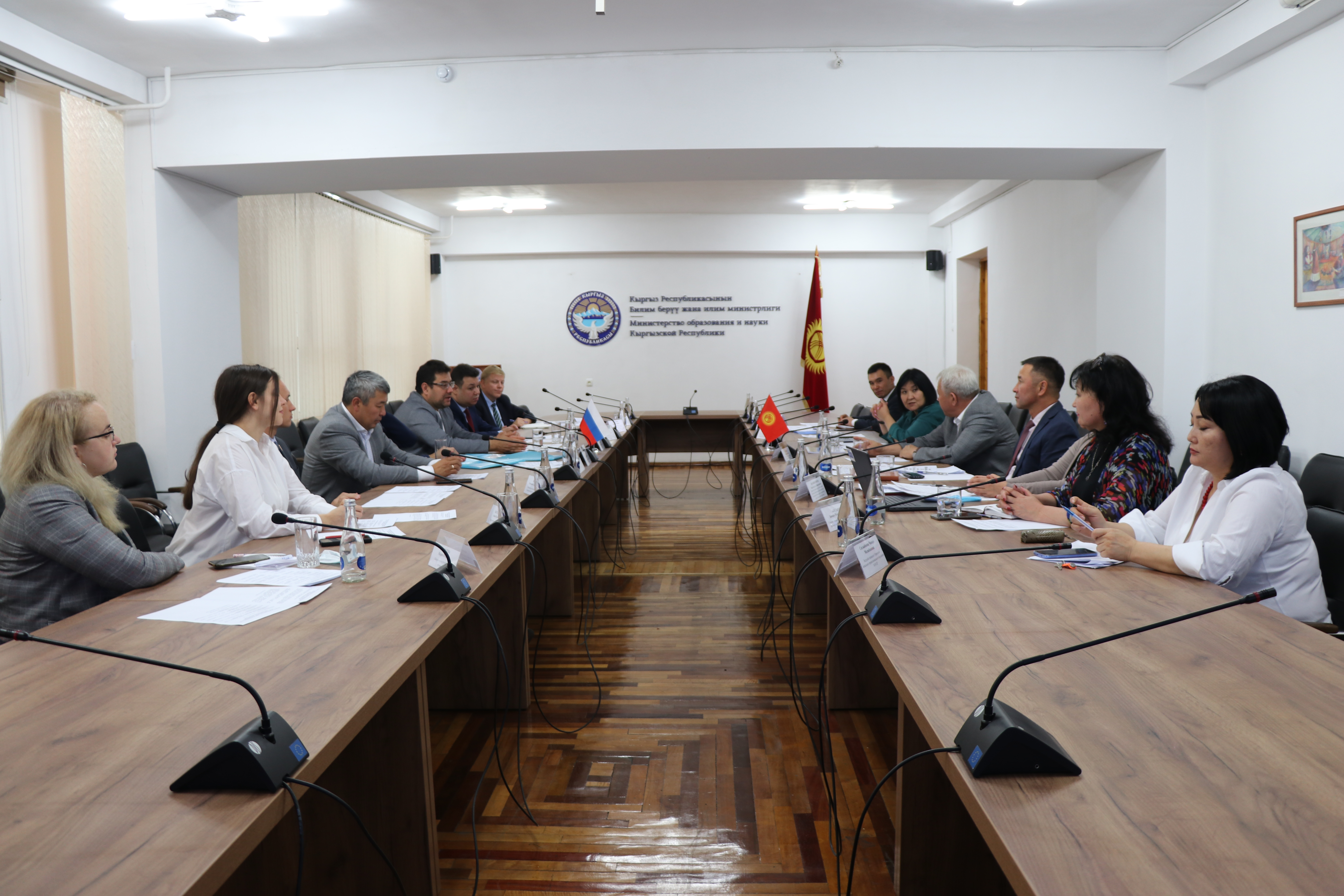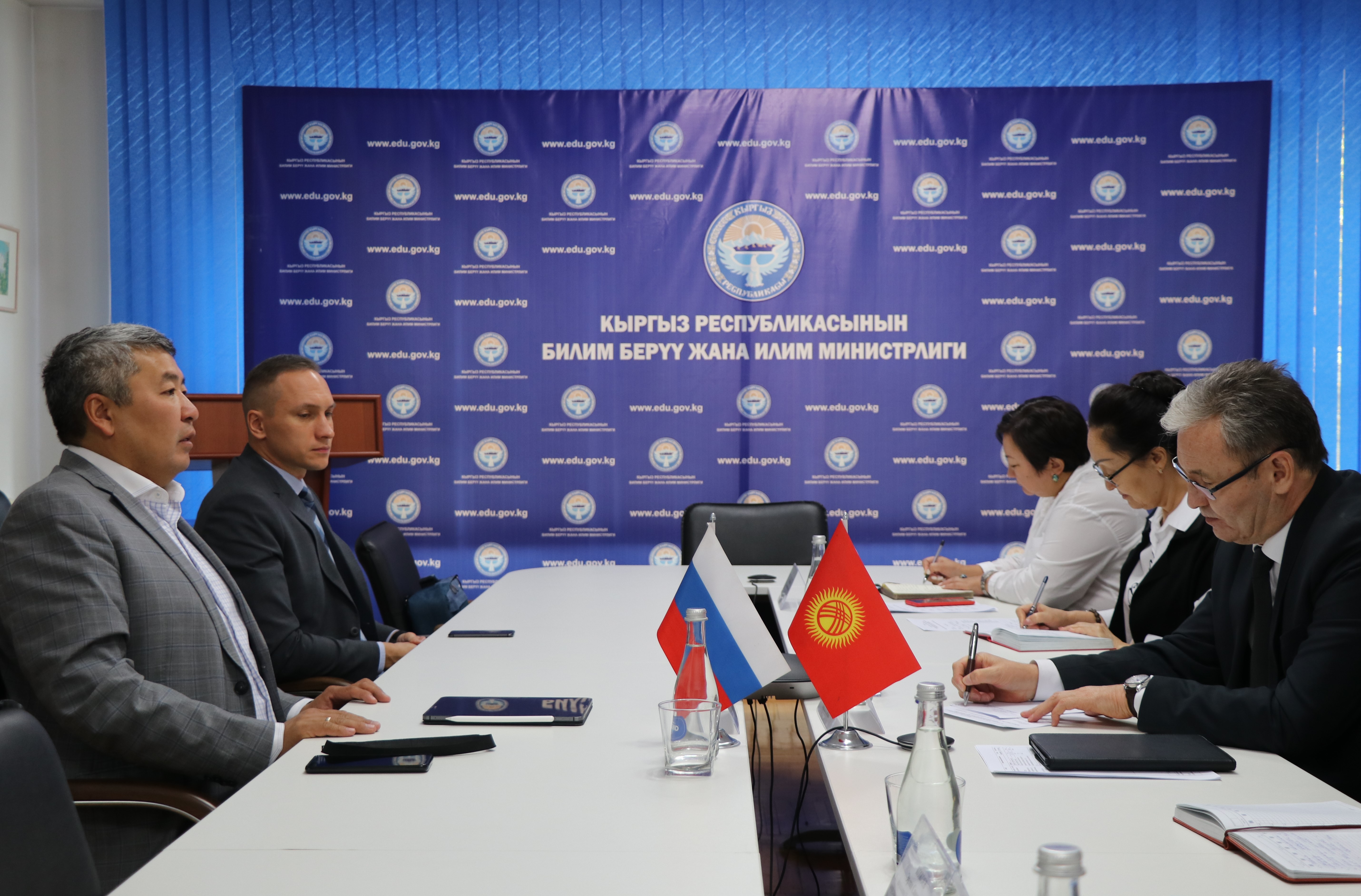 20 сентября в Министерстве образования и науки Кыргызской Республики состоялась установочная встреча делегаций Минпросвещения России и Акмуллинского университета с Заместителем министра образования и науки Кыргызской Республики Надирой Джусупбековой. В ходе встречи были затронуты вопросы, связанные с посещением и осмотром участков в регионах Кыргызстана, планируемых к строительству, разработки программы сотрудничества в сфере среднего профессионального образования, вопросы качества образования и проведения тестирования в общеобразовательных организациях Киргизии. В работе также приняли участие Руководитель представительства Россотрудничества в Кыргызской Республике Виктор Нефедов, заместитель директора Государственного агентства архитектуры, строительства и жилищно-коммунального хозяйства Мирбек Акматалиев, эксперты Российского государственного педагогического университета им. А.И. Герцена и Института развития профессионального образования.