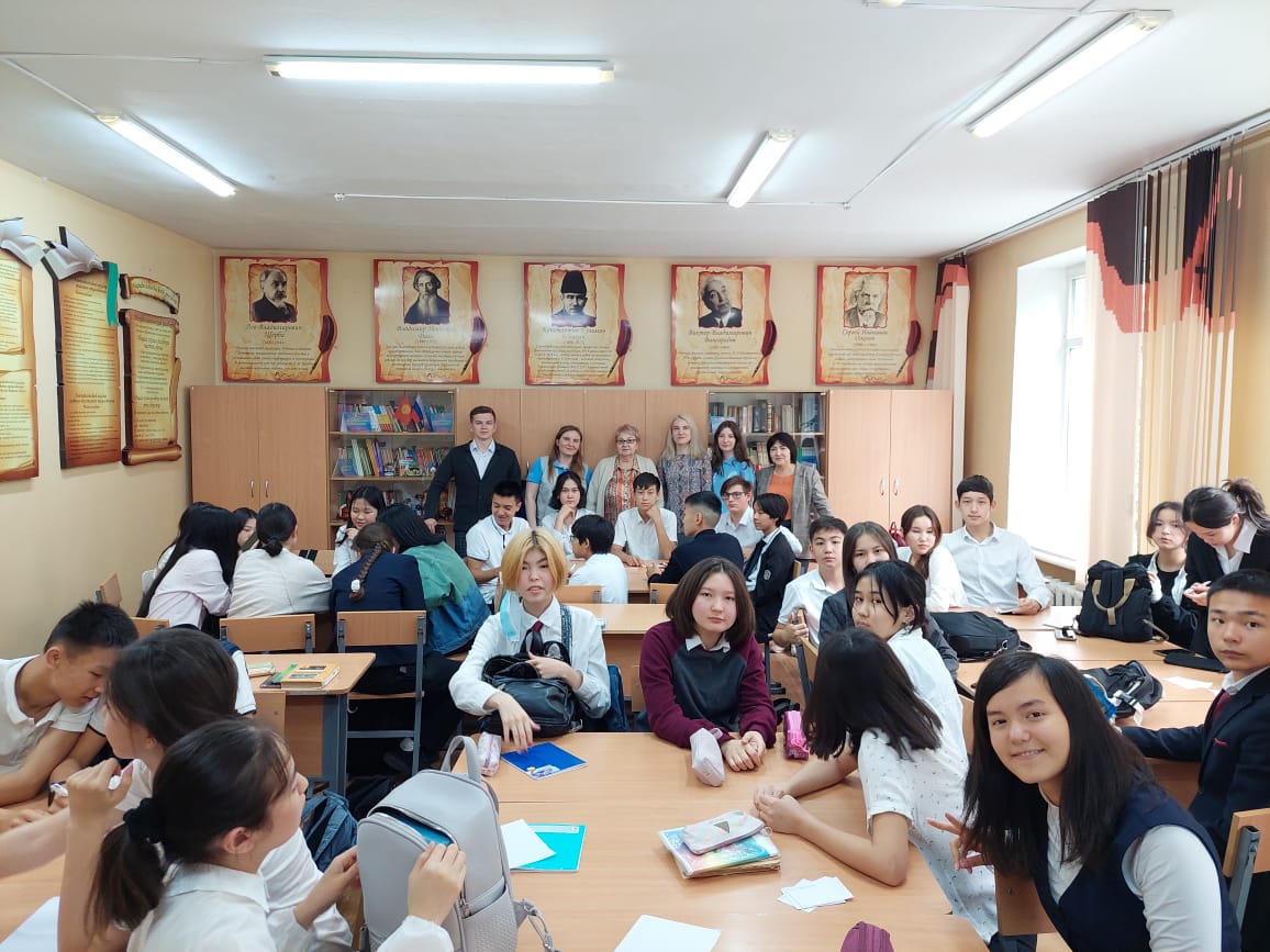 30 мая участники экспедиции посетили среднюю общеобразовательную школу № 46 и провели для учащихся 6-7 классов занятия на тему «Народы России», посвященные дружбе, сотрудничеству и взаимопомощи народов и наций России. В свою очередь киргизские школьники рассказали студентам о своём народе.