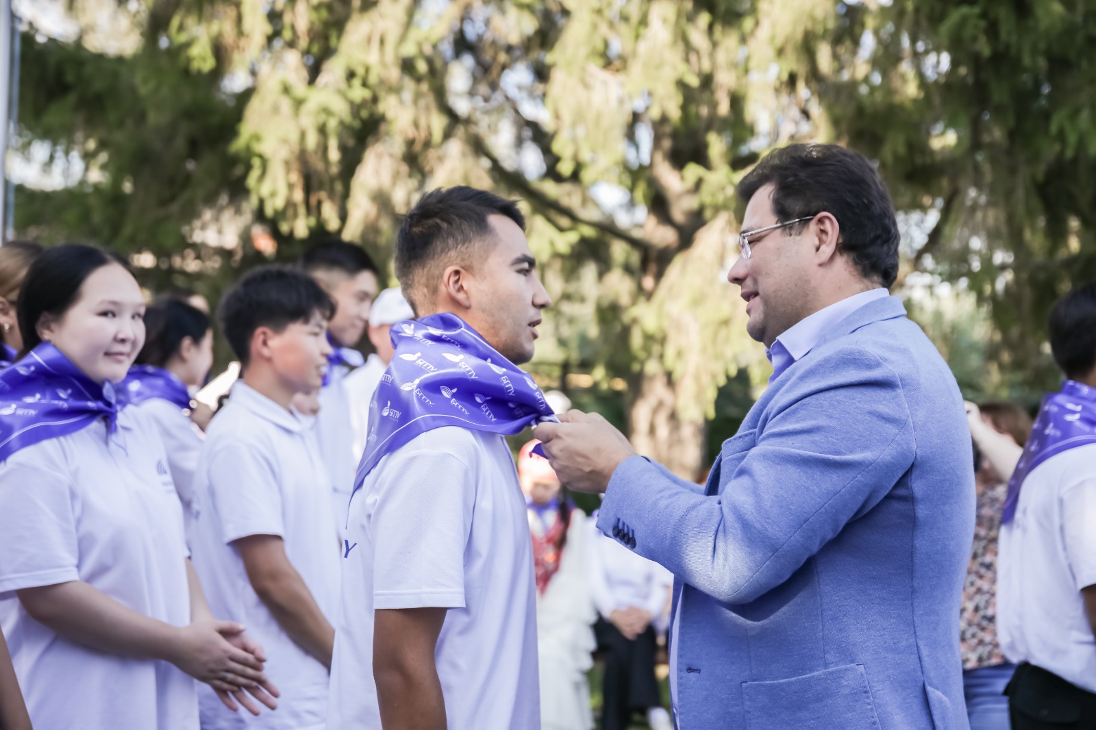 По традиции, принимая новоявленных студентов в семью Акмуллинского университета, им повязали галстуки вуза. В церемонии также приняли участие проректор по молодежной политике и международным связям Радик Юлбаев, и.о. начальника управления международных связей Резеда Мухитдинова и и.о. директора центра «Салихово» Наталья Шангина.