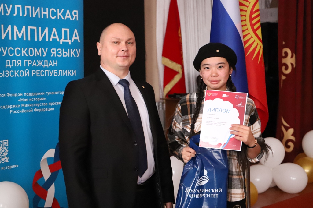 20 ноября 2024 г. в г. Бишкек и в г.Ош состоялись церемонии награждения победителей Акмуллинской олимпиады по русскому языку для граждан Кыргызской Республики. Интеллектуальное состязание прошло при поддержке Фонда поддержки гуманитарных наук «Моя история» и Министерства просвещения Российской Федерации. Олимпиада предназначена для старшеклассников Кыргызской Республики и проходила по всей территории Кыргызстана: г.Ош и Ошской области, г. Джалал-Абад, г. Баткен и Баткенской области, г.Нарын и Нарынской области, г.Каракол и Иссык-Кульской области, г.Талас, г.Бишкек и Чуйской области.