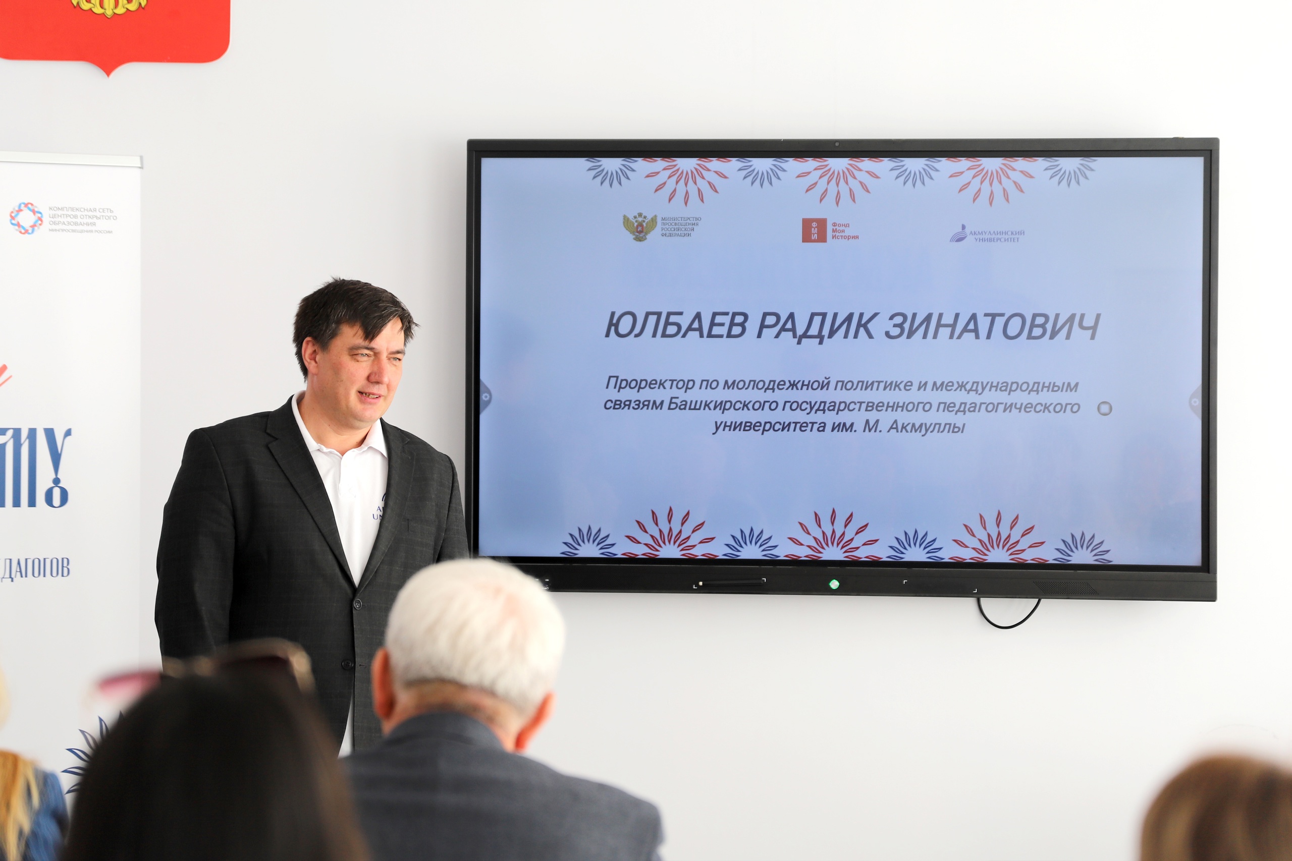 На открытии школы педагогов приветствовали проректор по молодежной политике и международным связям БГПУ им. М. Акмуллы Радик Юлбаев, почётный профессор Акмуллинского университета Канат Садыков и заместитель руководителя Департамента международного сотрудничества фонда «Моя история» Елена Гуляева.