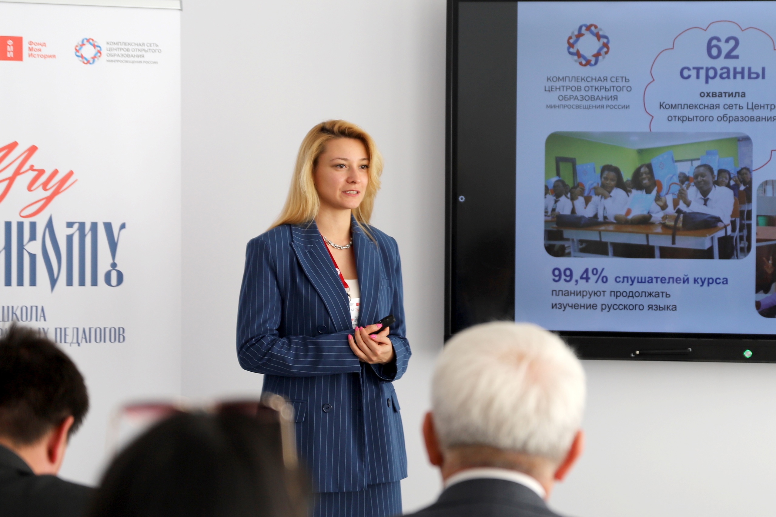 Елена Гуляева рассказал о деятельности фонда поддержки гуманитарных наук «Моя история», которая направлена на реализацию проектов Минпросвещения РФ по популяризации русского языка, российского образования и российской культуры за рубежом.