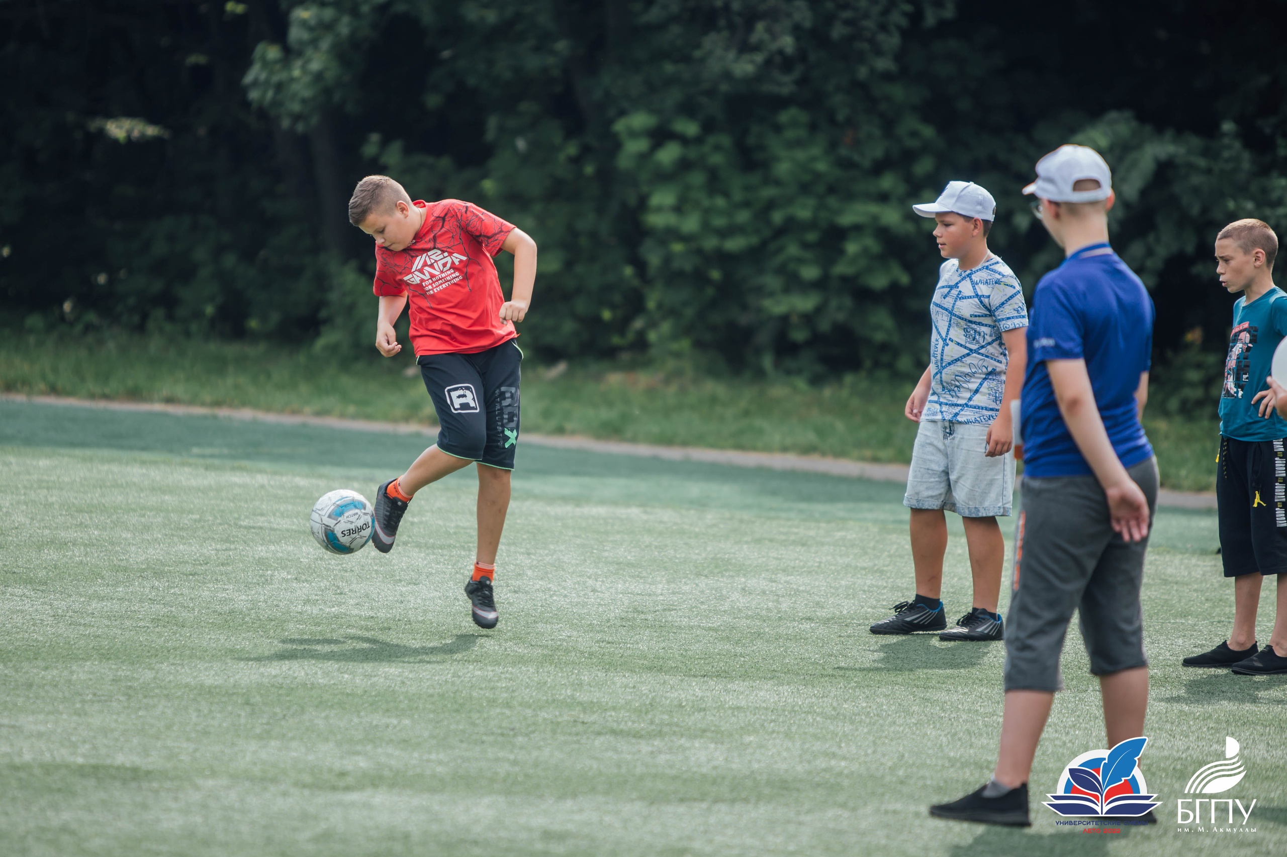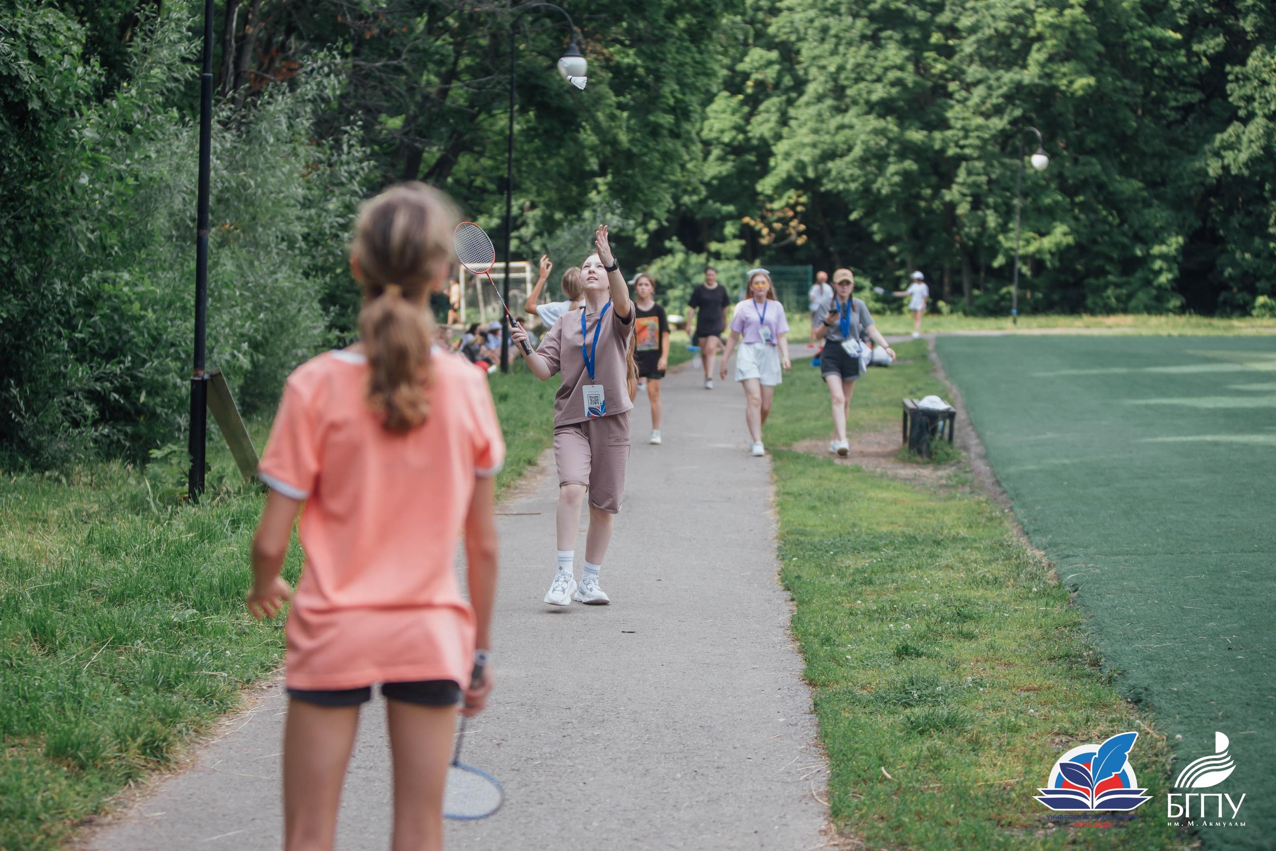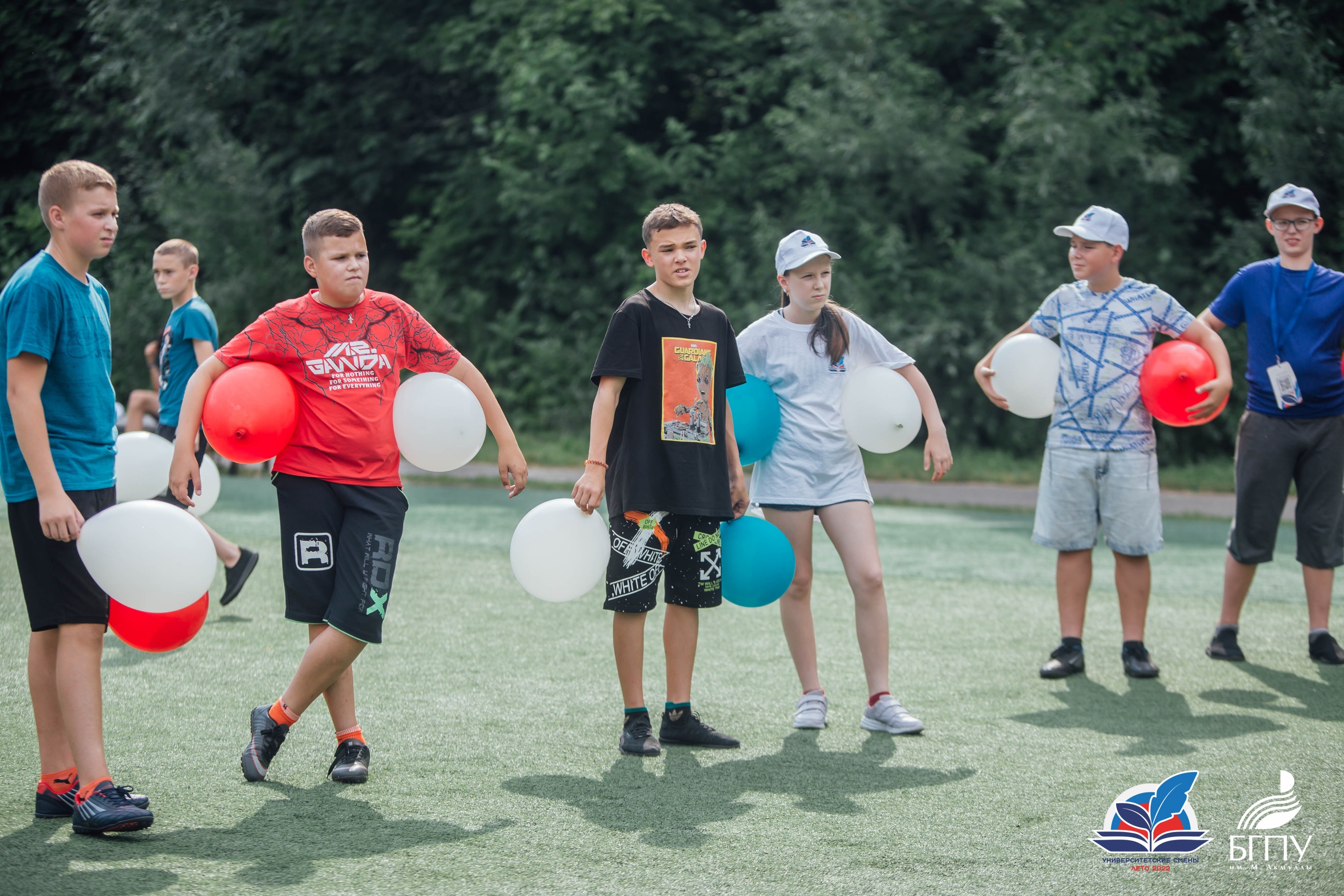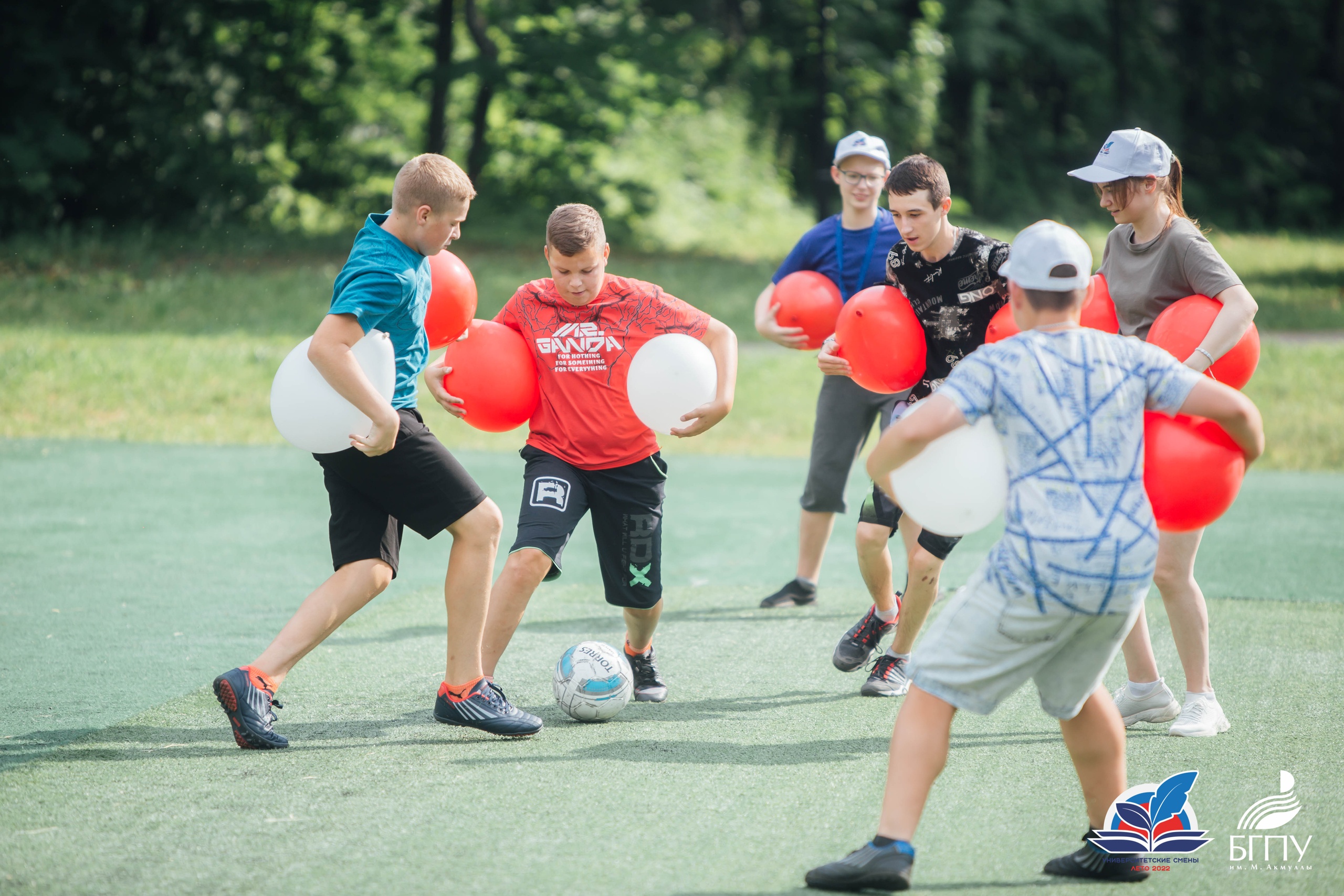 Далее школьники переместились в парк имени Лесоводов Башкирии, где они сыграли в шуточный футбол с воздушными шарами. Игра проходила по всем правилам привычного всем футбола, но с небольшим дополнением. В руках игроки держали воздушные шары, накачанные обычным воздухом. Юные футболисты должны были не просто забить мяч в ворота соперника, но также не дать воздушным шарикам коснуться земли. Это был матч, в котором игра была важнее результата.  Также ребята смогли поиграть в бадминтон, волейбол и другие подвижные игры. Организаторы университетской смены отмечают, что несмотря на усталость, дети были счастливы.