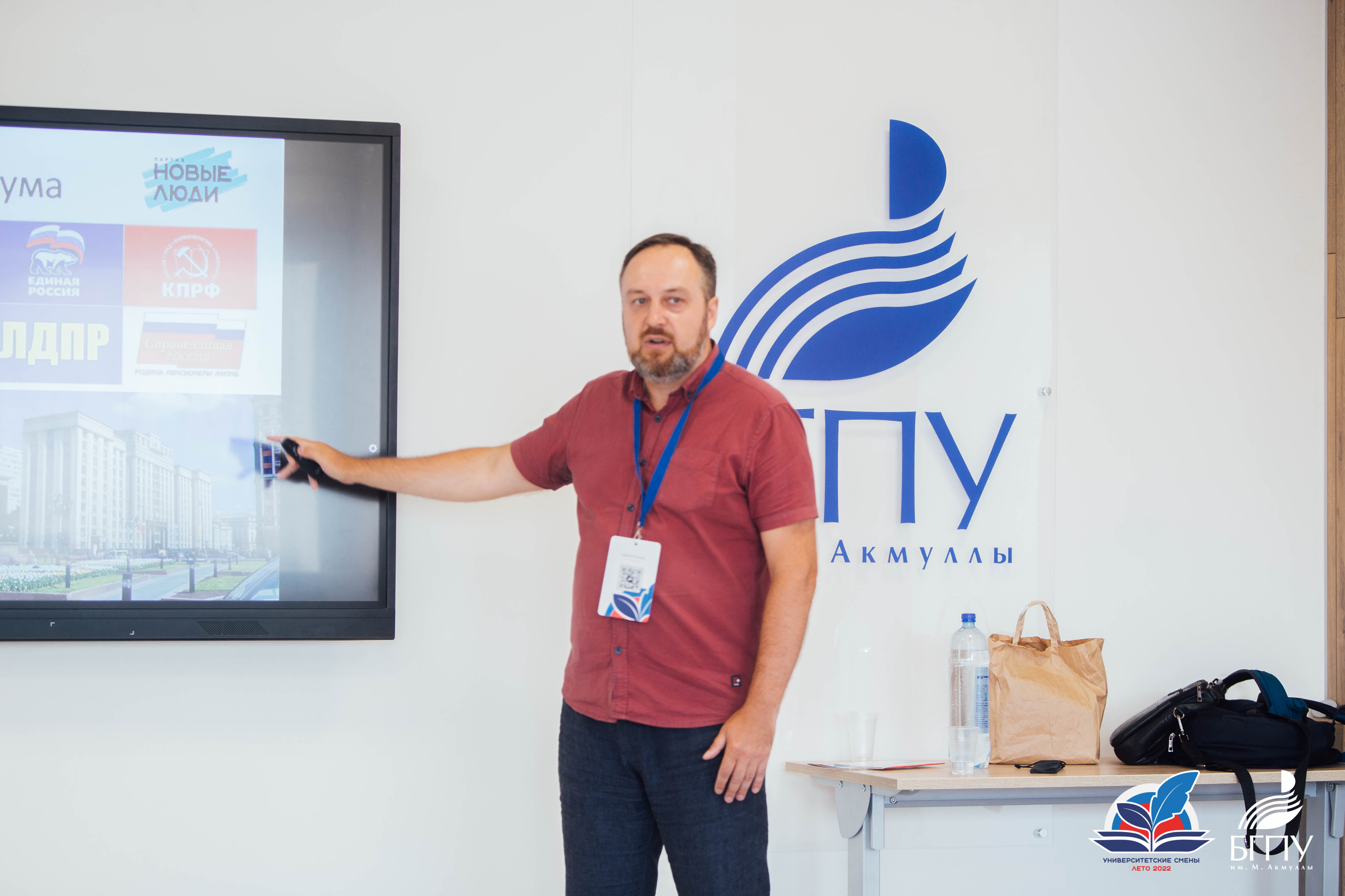 Далее на базе технопарка Акмуллинского университета для школьников из Луганска прошла интерактивная лекция «Конституция как договор между человеком и государством». На эту тему выступил лектор Российского общества «Знание», доцент кафедры обществознания, права и социального управления БГПУ им. М. Акмуллы Евгений Булычев.