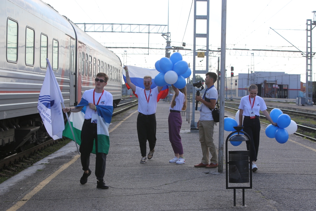 31 июля на железнодорожный вокзал Уфы прибыли участники третьей Университетской профильной образовательной смены, проводимой  Башкирским государственным педагогическим университетом им. М. Акмуллы.