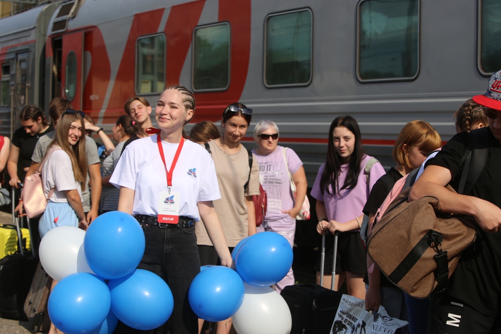 40 ребят из городов Брянка и Кировск Луганской Народной Республики и сопровождающих их педагогов встречали вожатые и организаторы смены.