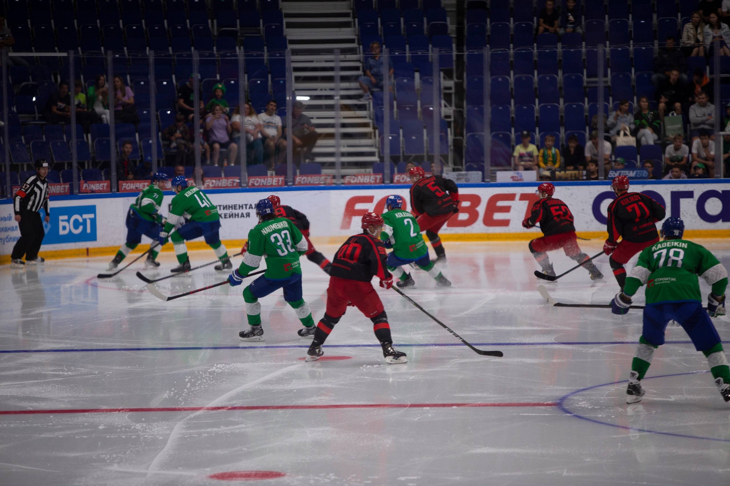 Завершился пятый день смены товарищеским хоккейным матчем уфимской команды «Салават Юлаев» с  «Автомобилистом» из Екатеринбурга.  Встреча прошла на стадионе «Уфа-Арена». По итогам со счётом 1:2 победу одержал хоккеисты «Автомобилиста».