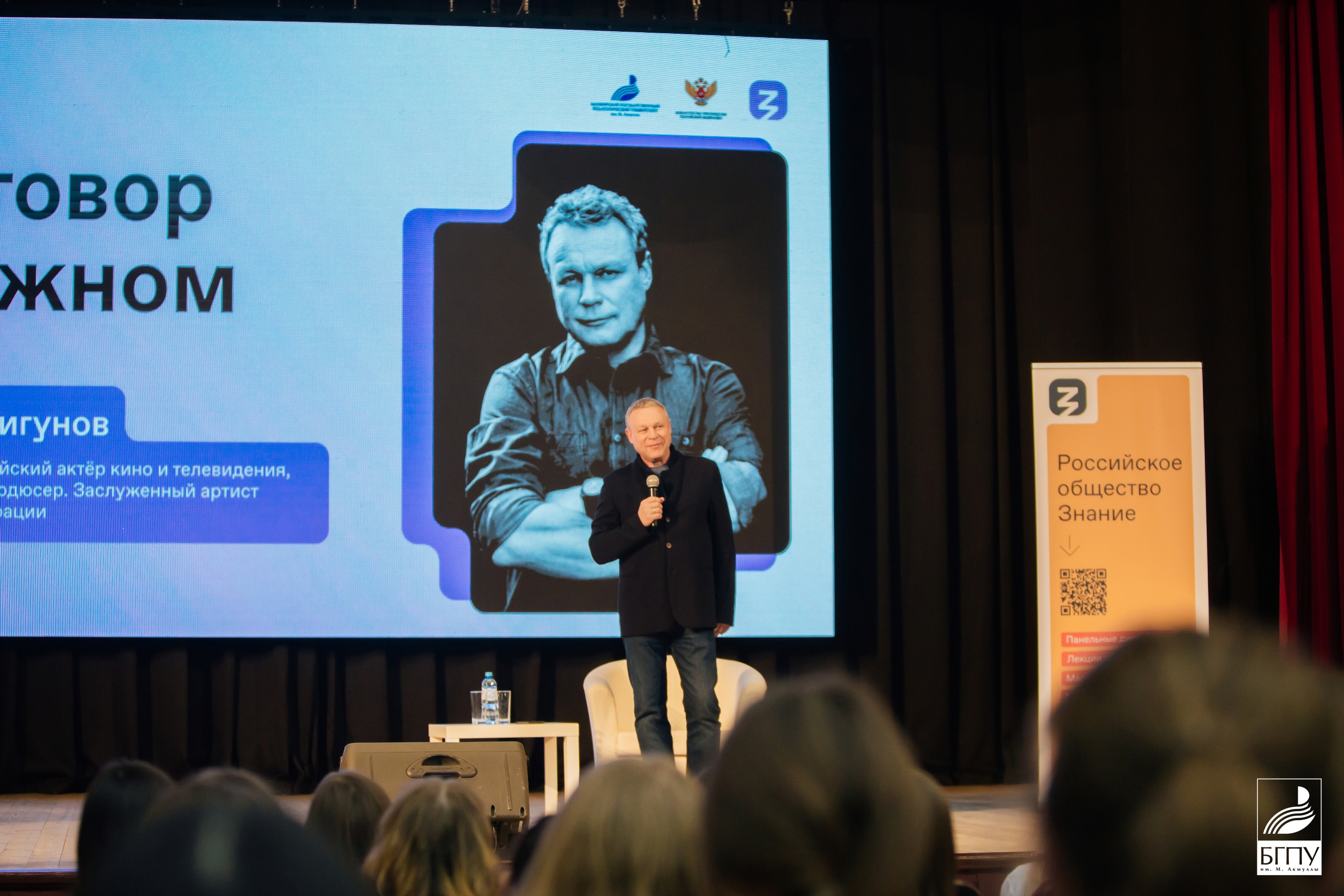 Заключительным мероприятием стала встреча с актёром кино и телевидения, кинорежиссёром, продюсером, заслуженным артистом России Сергеем Жигуновым. Сергей Викторович поговорил с ребятами о своих любимых учителях и роли учителя в становлении молодого человека.