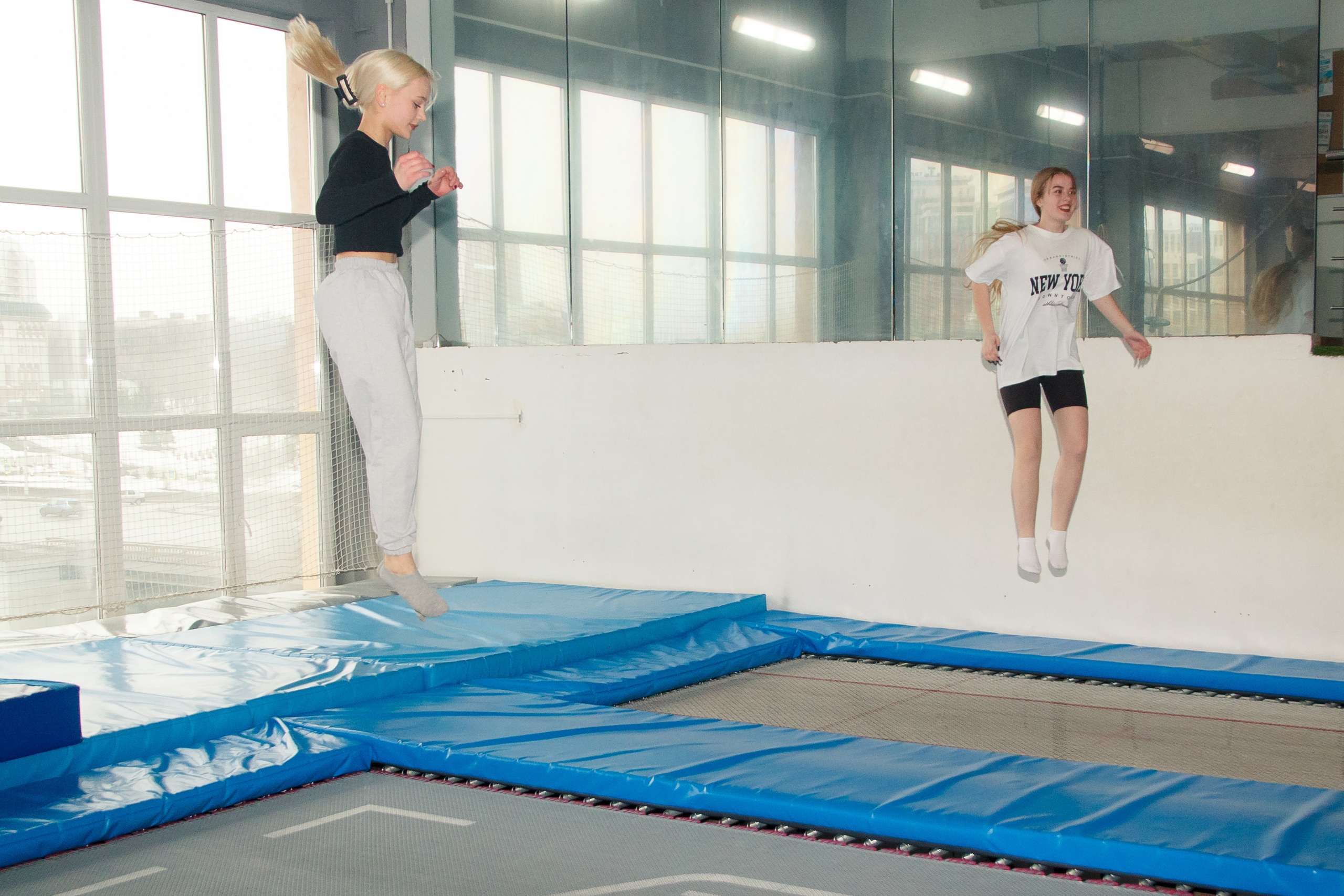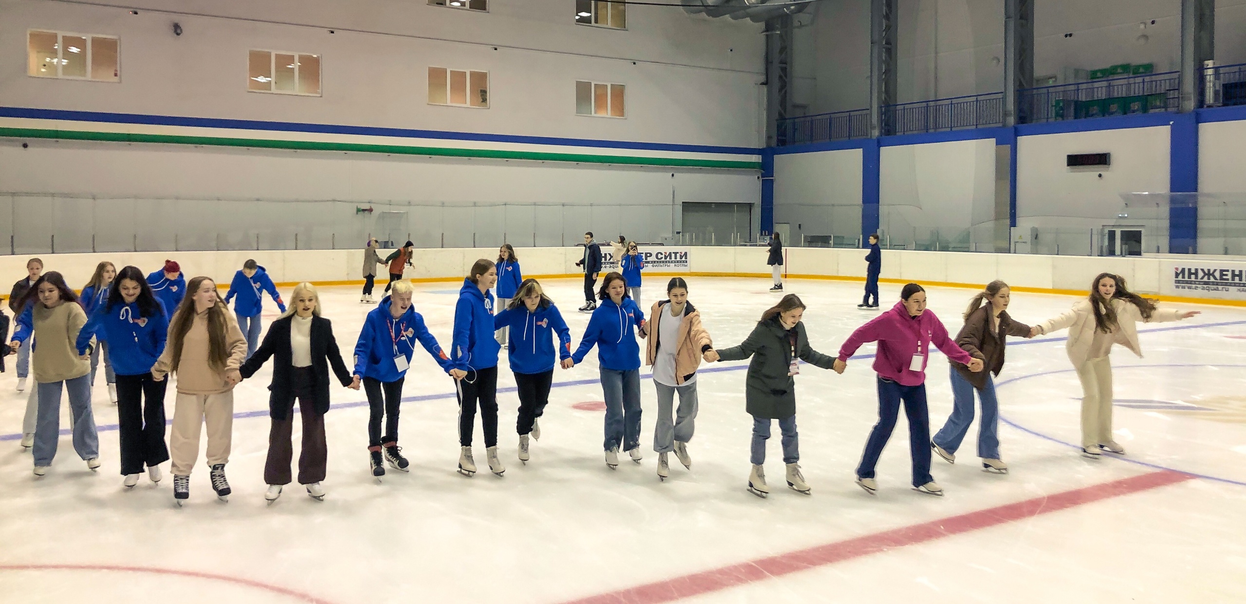 Вторник стал спортивным днём. Утром ребята посетили флайпарк, где вдоволь напрыгались на батутах. А вечером надели коньки и попробовали свои силы на ледовой арене знаменитого хоккейного клуба «Салават Юлаев».
