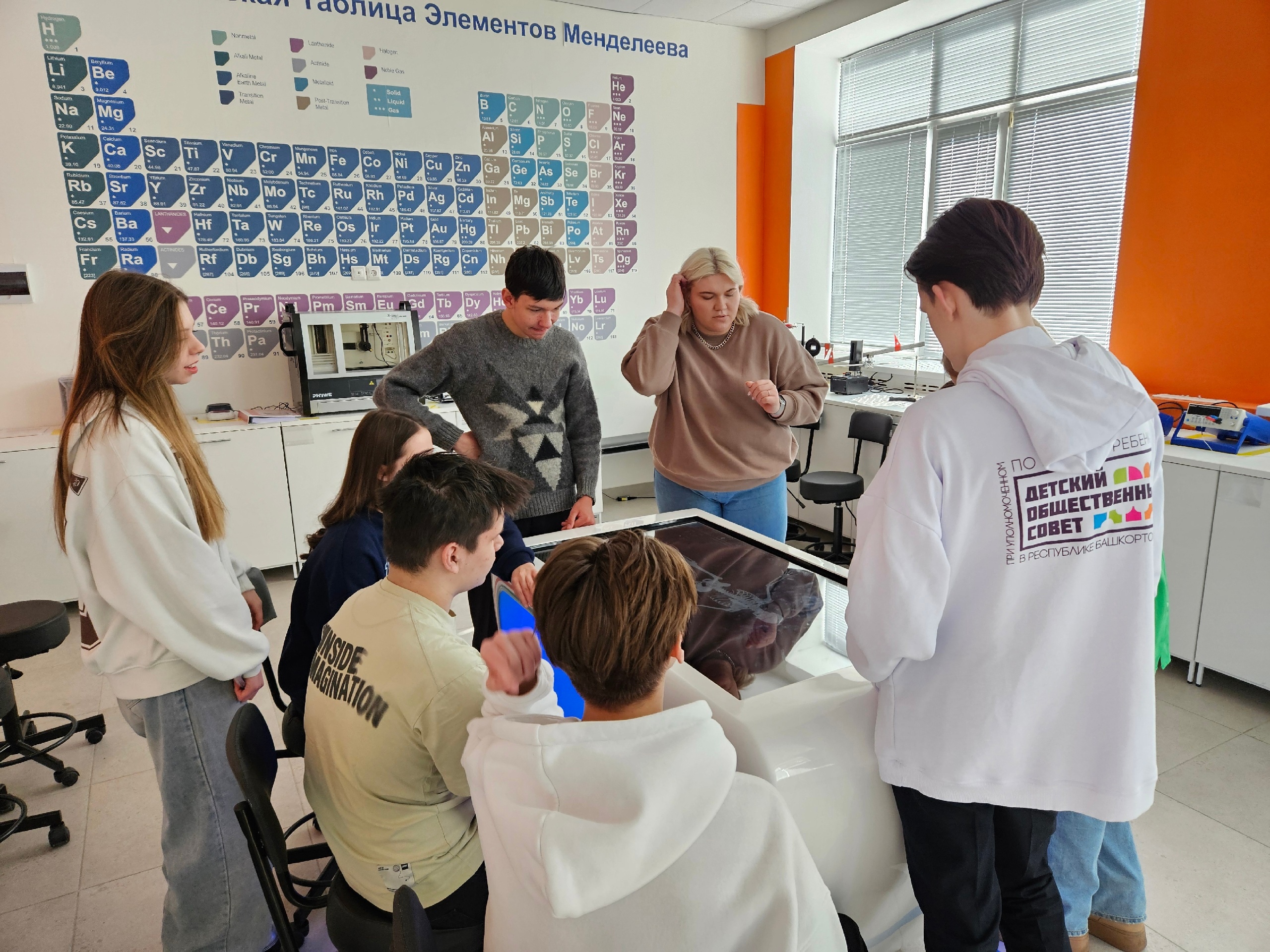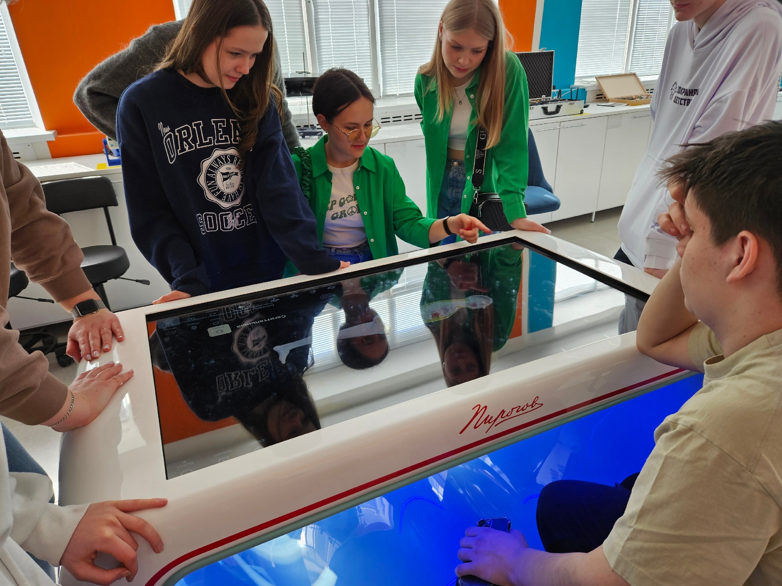 Ребята познакомились с инновационными зонами по физике, химии, рентгенографии и биотехнологии, а также протестировали интерактивный анатомический стол "Пирогов". Были также коворкинг-зона и увлекательный квиз от студентов университета.