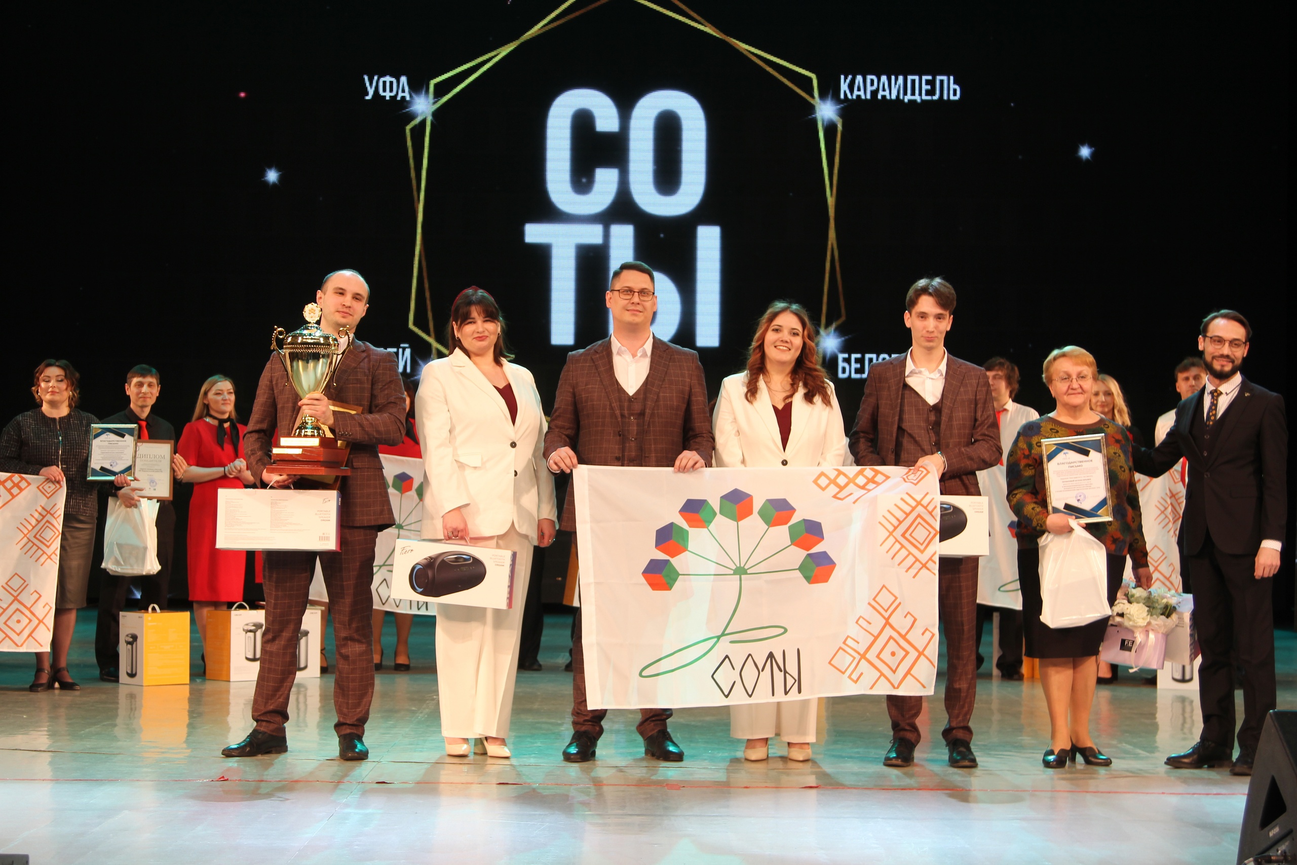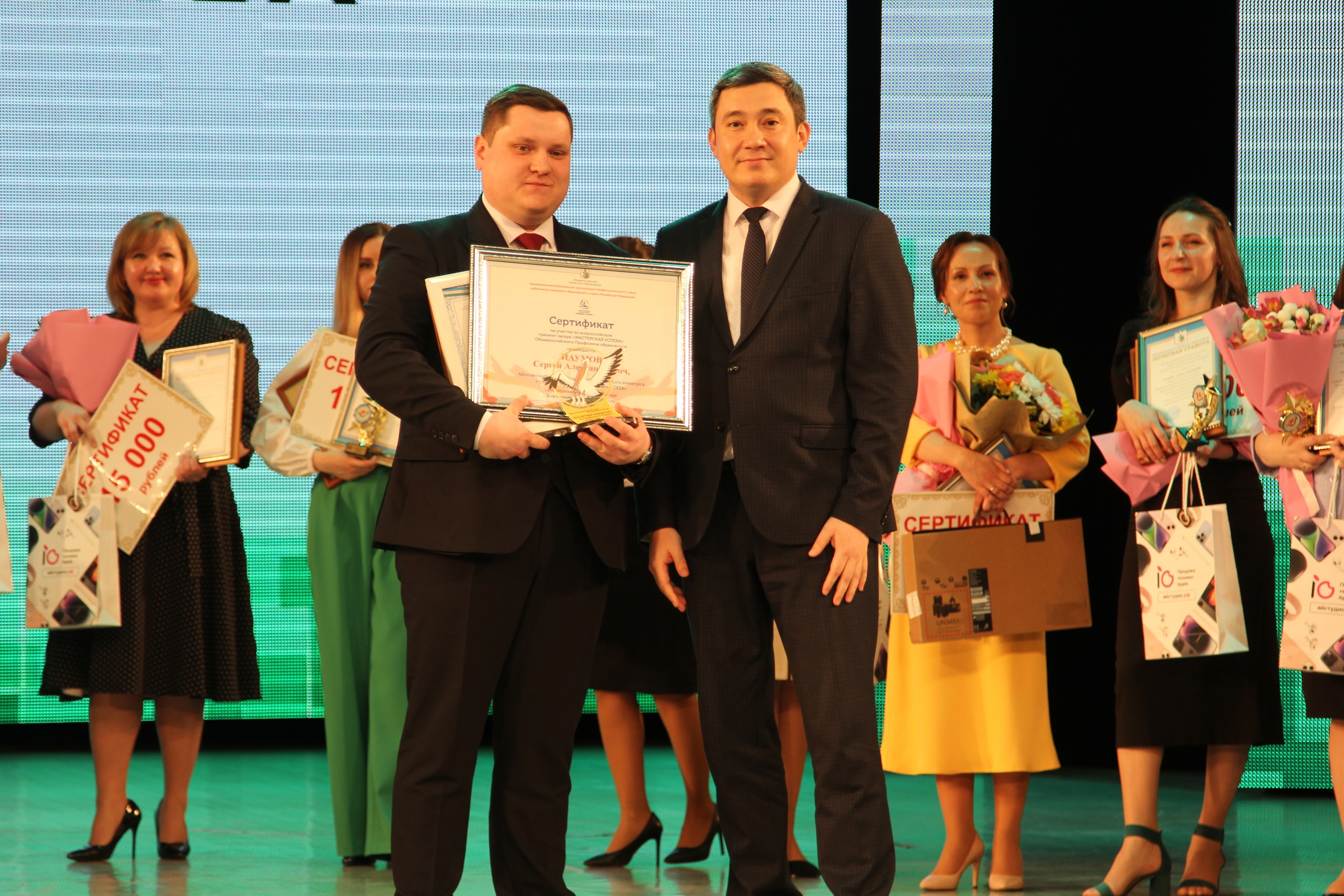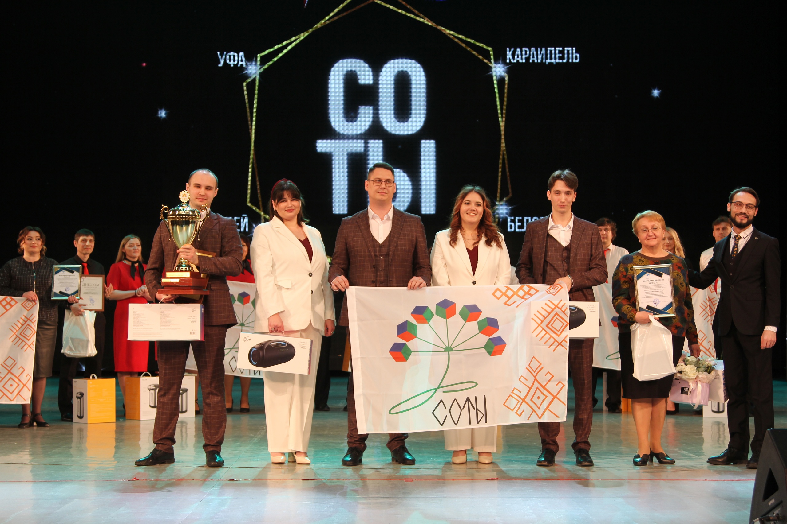 Также во время торжественной церемонии были также объявлены победители республиканского педагогического марафона «СОТЫ», финал которого проходил в марте этого года в БГПУ им. М. Акмуллы. Абсолютную победу в этом сезоне одержала команда педагогов Уфы, которая тем самым сделала подарок любимому городу к его 450-летнему юбилею. Награду победителям марафона вручил Сергей Переверзев, председатель республиканского педагогического марафона «СОТЫ», председатель региональной общественной организации «Педагогическая лаборатория "Образование будущего"», директор Технопарка БГПУ имени Акмуллы.