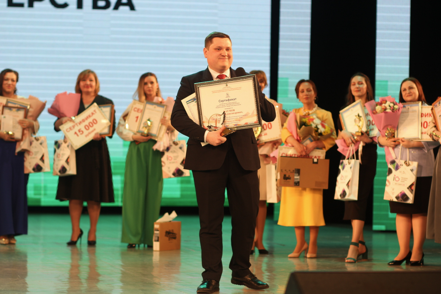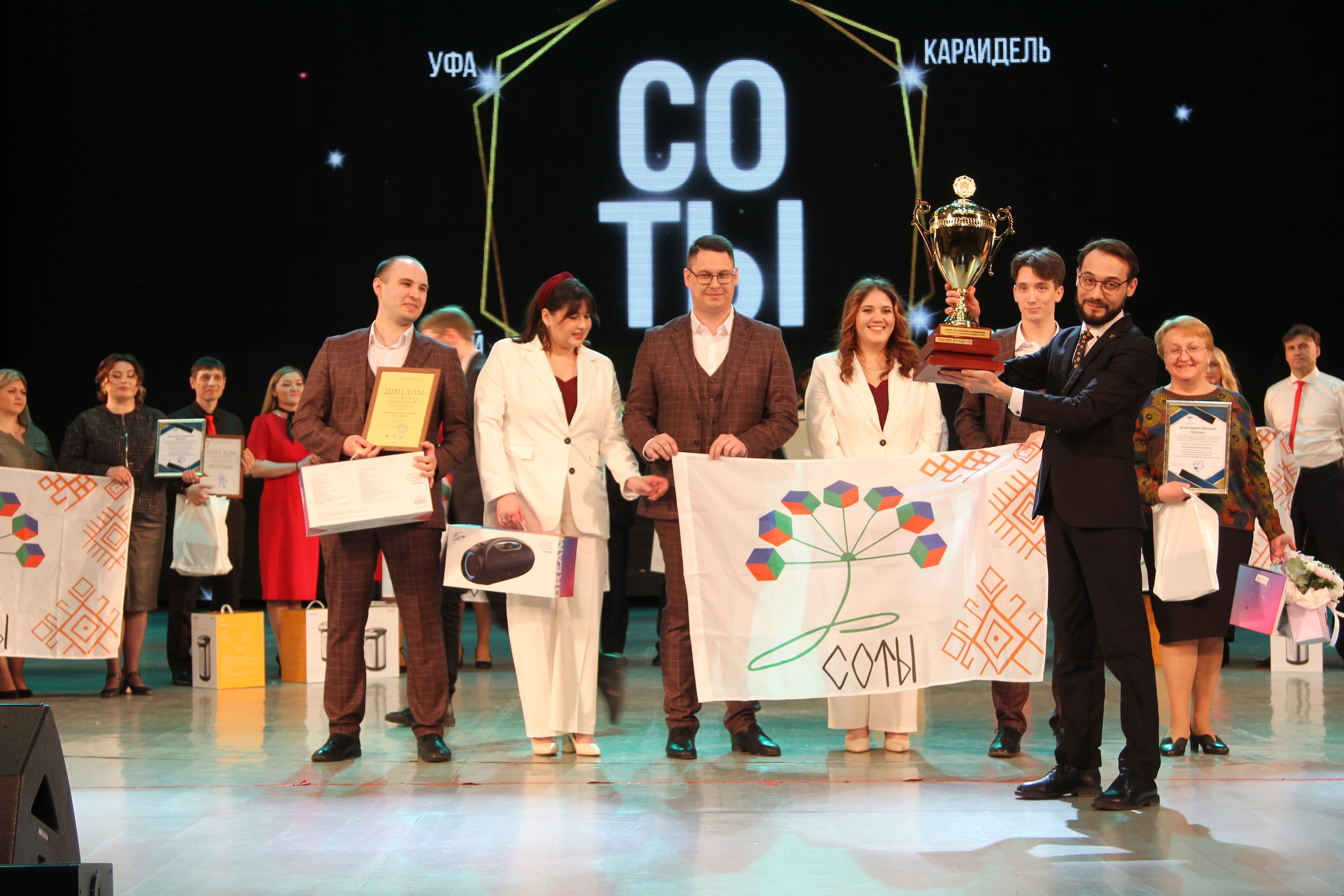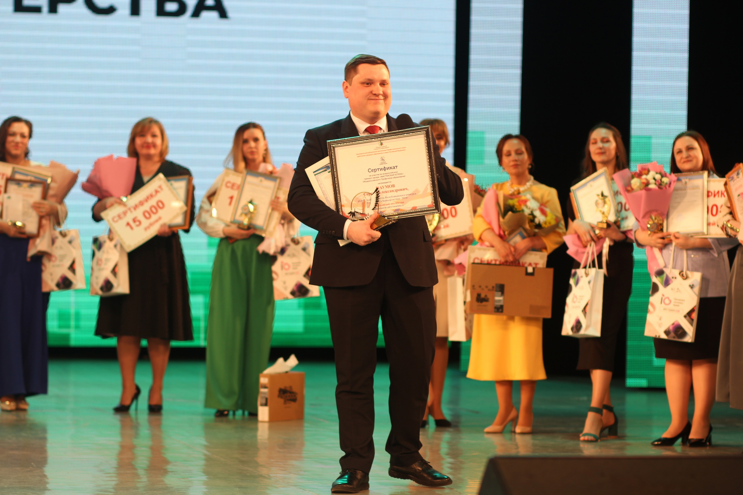 Также во время торжественной церемонии были также объявлены победители республиканского педагогического марафона «СОТЫ», финал которого проходил в марте этого года в БГПУ им. М. Акмуллы. Абсолютную победу в этом сезоне одержала команда педагогов Уфы, которая тем самым сделала подарок любимому городу к его 450-летнему юбилею. Награду победителям марафона вручил Сергей Переверзев, председатель республиканского педагогического марафона «СОТЫ», председатель региональной общественной организации «Педагогическая лаборатория "Образование будущего"», директор Технопарка БГПУ имени Акмуллы.
