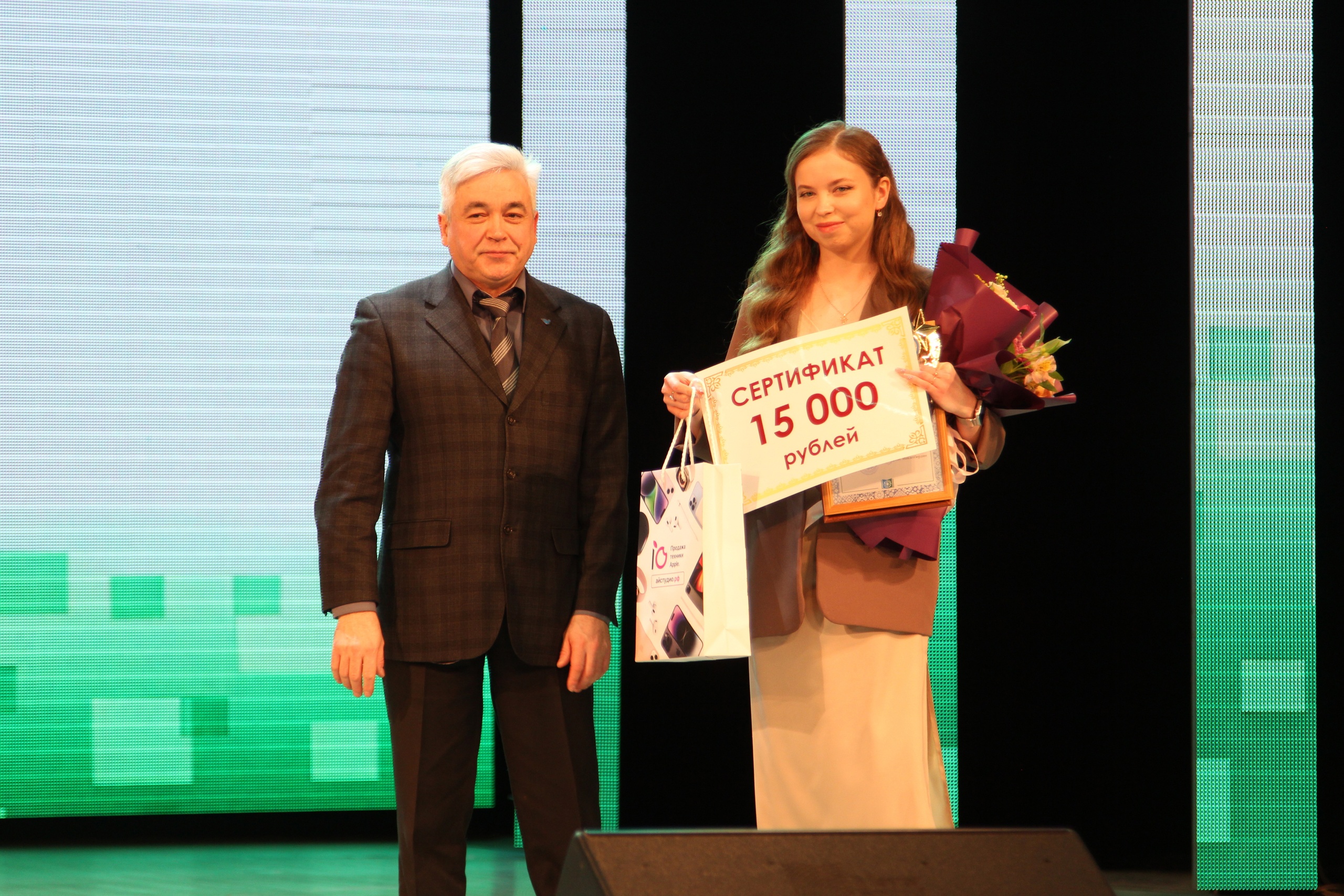 Также Алмаз Мустаев наградил победителя и лауреатов конкурса «Молодой учитель года». Лучшей в этом конкурсе стала учитель математики лицея №9 г.Сибая Александра Половнёва.