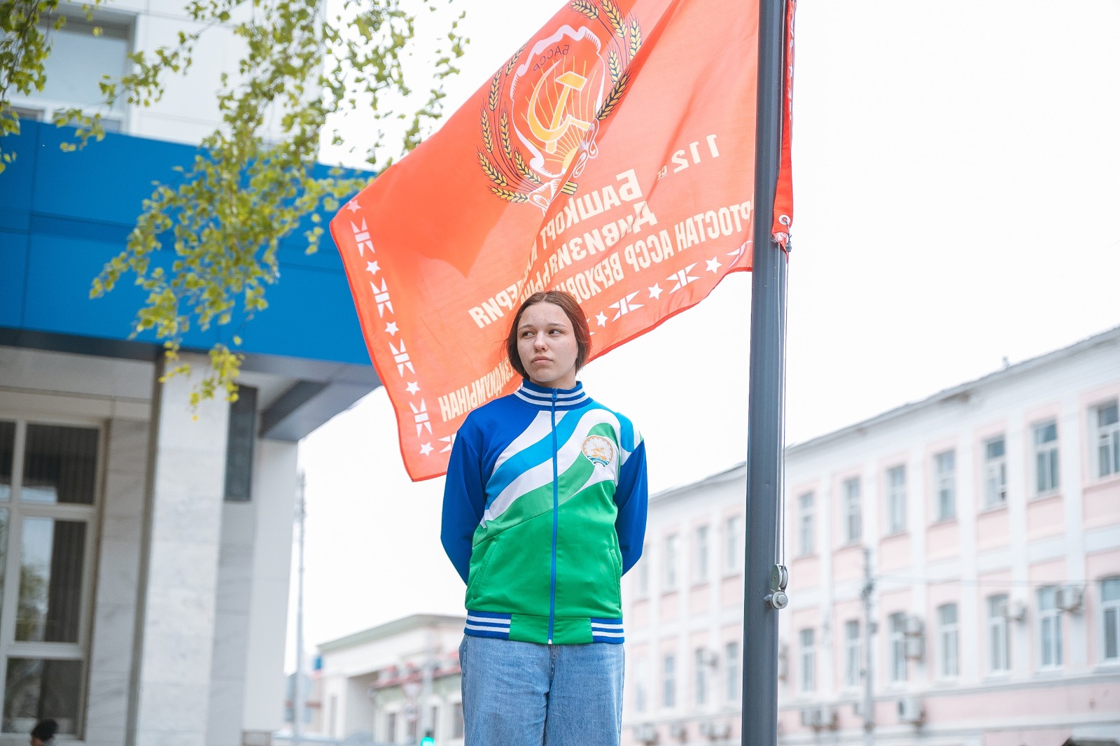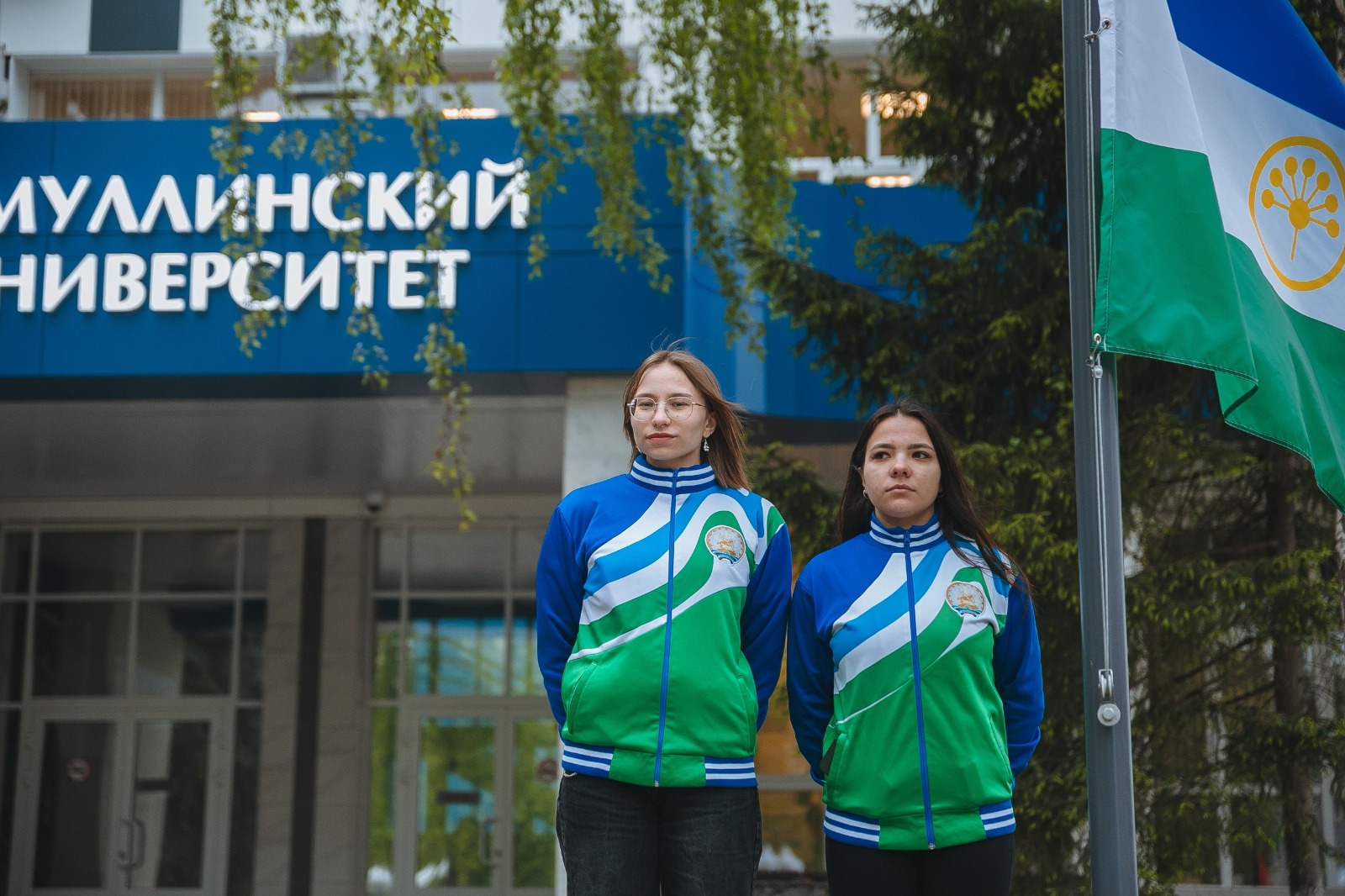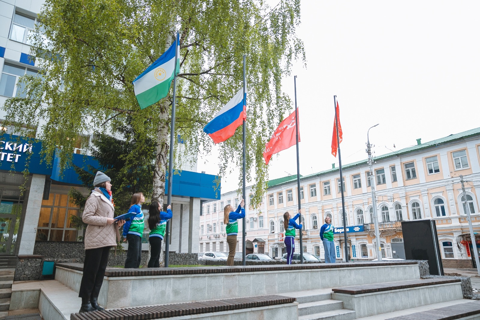 Лаптистки БГПУ имени М. Акмуллы подняли флаги и знамёна перед университетом