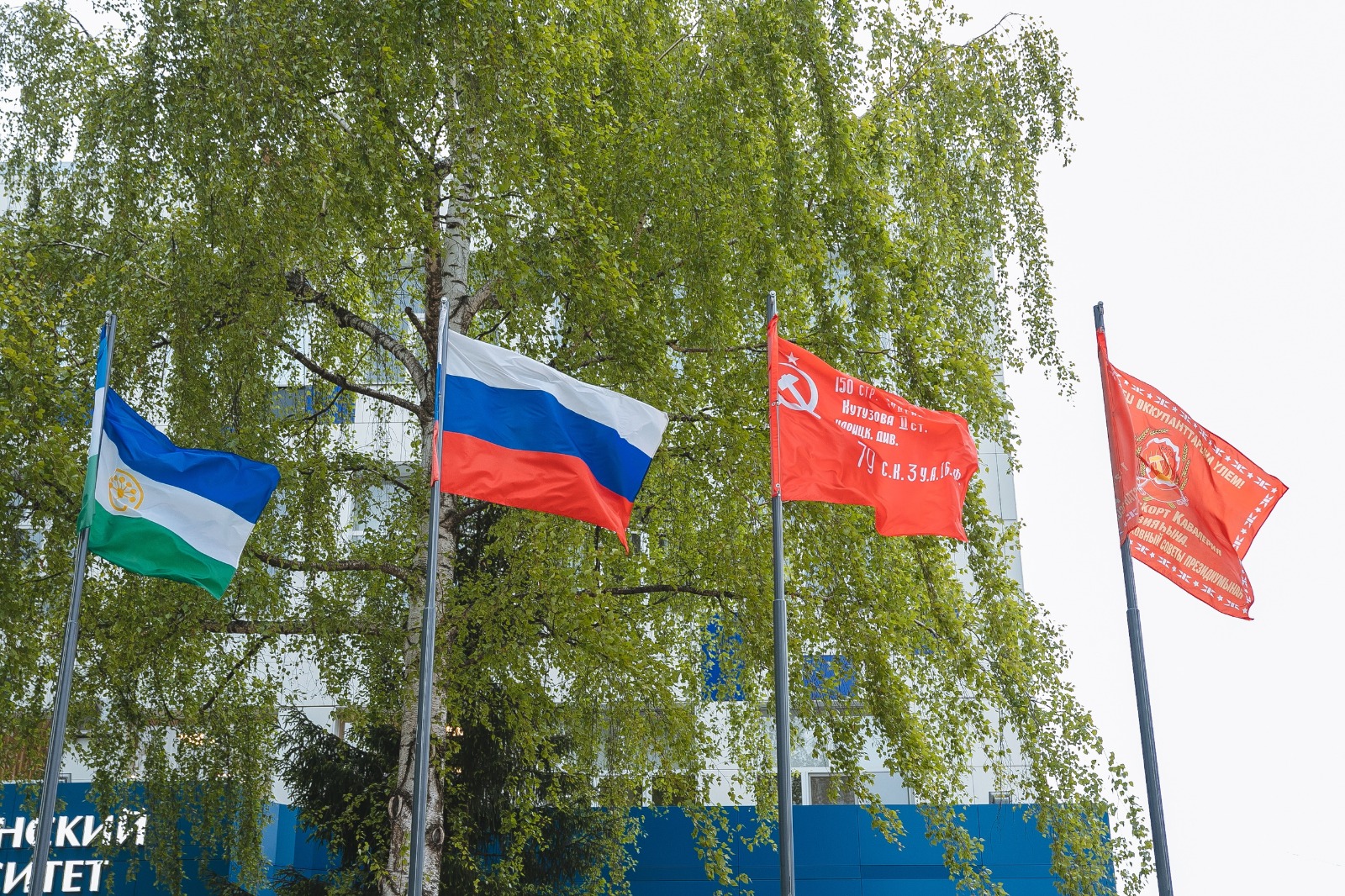 6 мая перед первым корпусом БГПУ имени Акмуллы состоялась торжественная церемония поднятия флагов Российской Федерации, Республики Башкортостан, знамён Победы, 112-ой Башкирской кавалерийской дивизии.