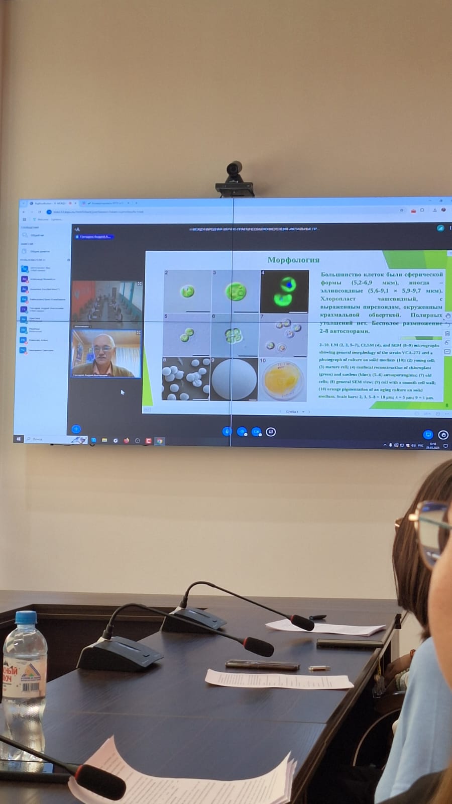 Доцент кафедры химии и химического образования Мелитопольского государственного университета Александр Яковийчук рассказал, как меняются показатели роста Chlorococcum oleofaciens при использовании света разной интенсивности и спектрального состава. Завкафедрой биологии  Юлия Бачура и аспирант кафедры биологии Гомельского государственного университета имени Франциска Скорины  Алёна Новикова  представили информацию о водорослях рода Klebsormidium в составе альгоцианобактериальной флоры дегроторфяников Гомельского региона. Профессор Лира Гайсина выступила с докладом о влиянии суспензий водорослей и цианобактерий на урожайность и качество зерна пшеницы мягкой сорта "Зауральская жемчужина". Аспирант Мелитопольского государственного университета Анжелика Кочубей раскрыла биохимические особенности штаммов  Bracteacoccus minor и Chlorococcum oleofaciens при афотическом стрессе.