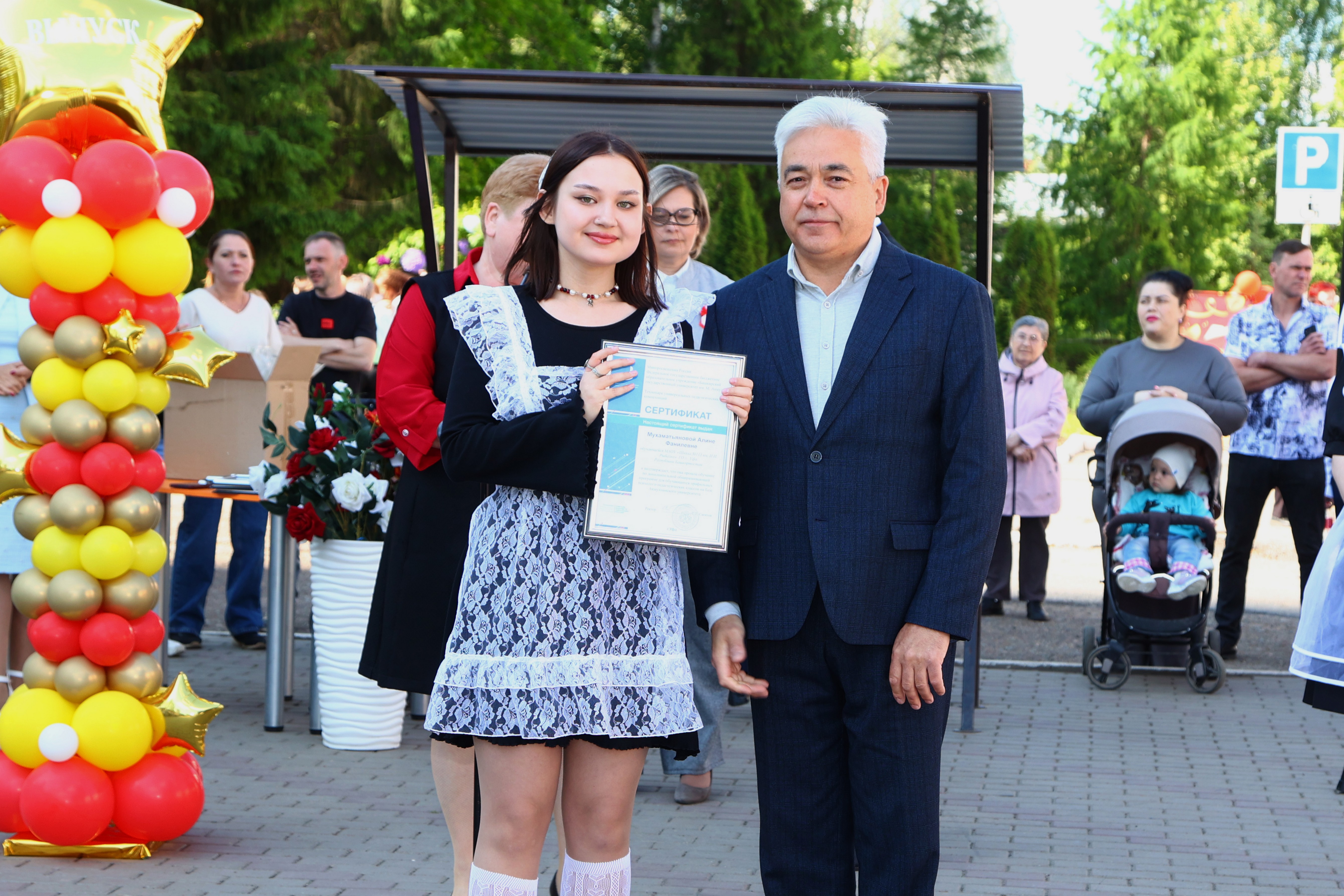 «Сертификаты выпускников – символ успешного завершения этапа обучения, который стимулирует учащихся идти вперед и стремиться к самосовершенствованию. Получение сертификатов является не просто формальностью, а результатом усилий, вложенных в учебу и личностный рост. Этот документ подтверждает готовность обучающихся к новым вызовам и открывают двери к дальнейшему образованию и началу профессиональной карьеры», - отметил на торжественной линейке первый проректор по стратегическому развитию Акмуллинского университета Алмаз Мустаев.