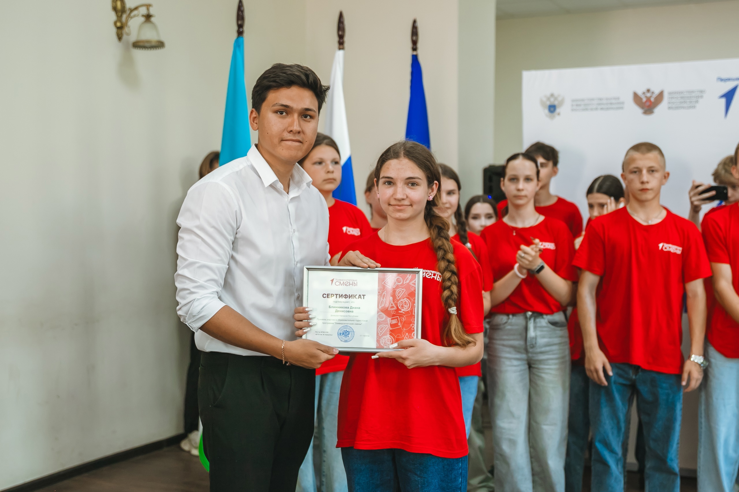 Сертификаты участника образовательно-туристского проекта «Университетские смены» школьникам вручили первый проректор по стратегическому развитию Акмуллинского университета Алмаз Мустаев и председатель уфимского отделения «Движения Первых» Камиль Нураев.