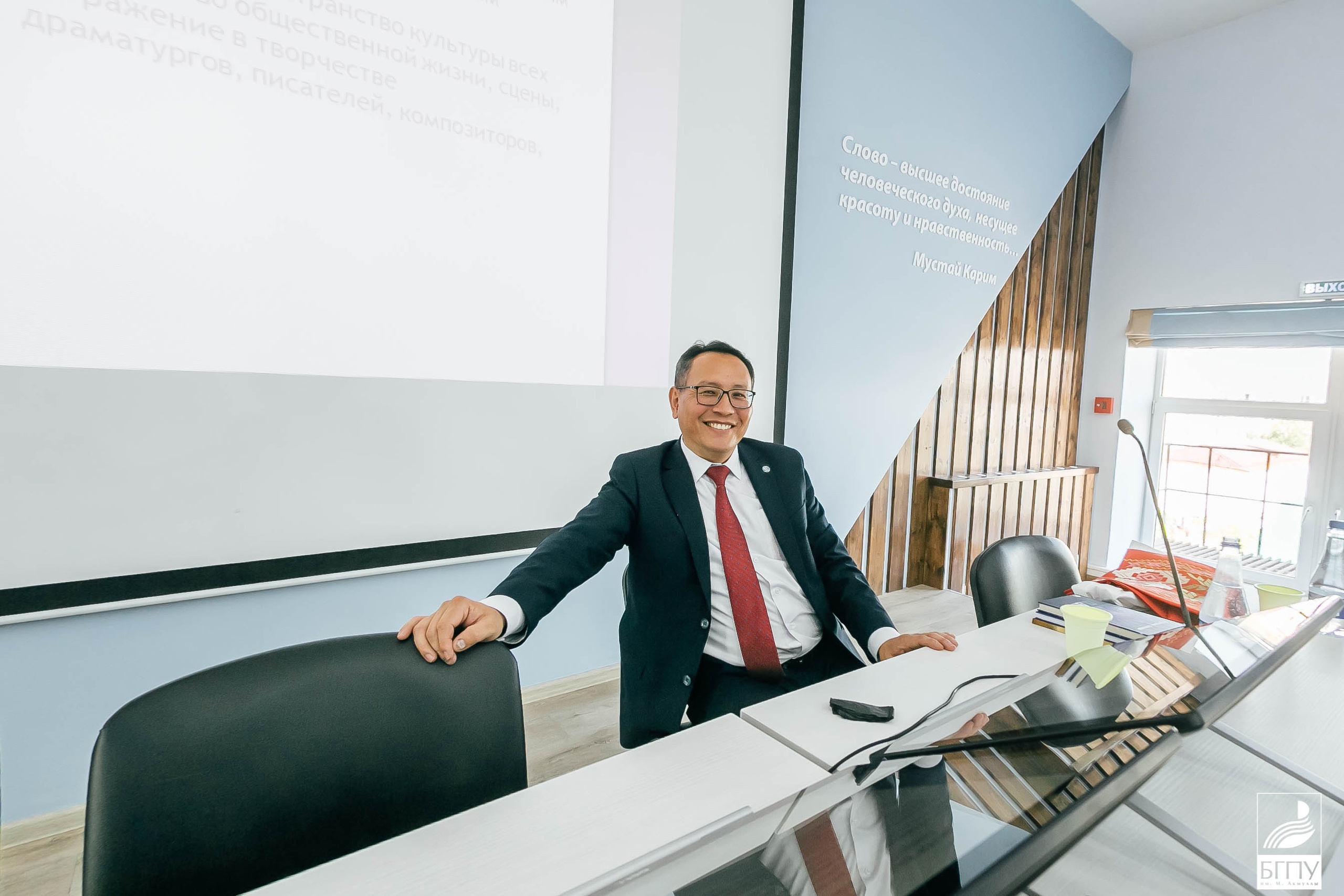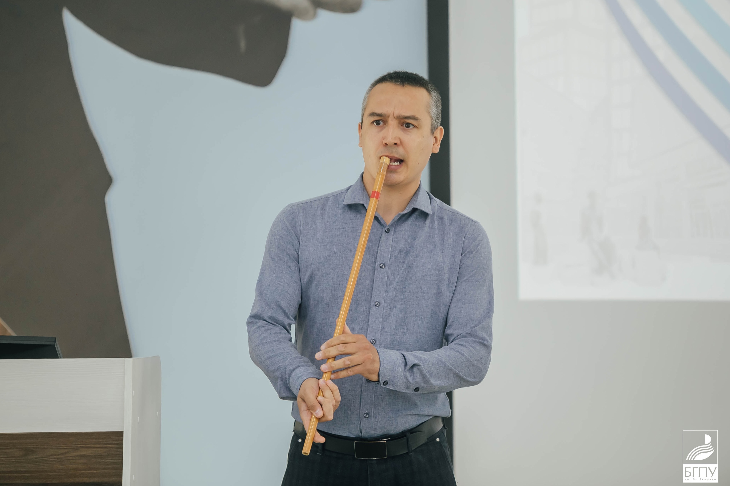 В заключительной части мероприятия в БГПУ им. М. Акмуллы Талантаалы Бакчиев исполнил отрывок из эпоса «Манас».