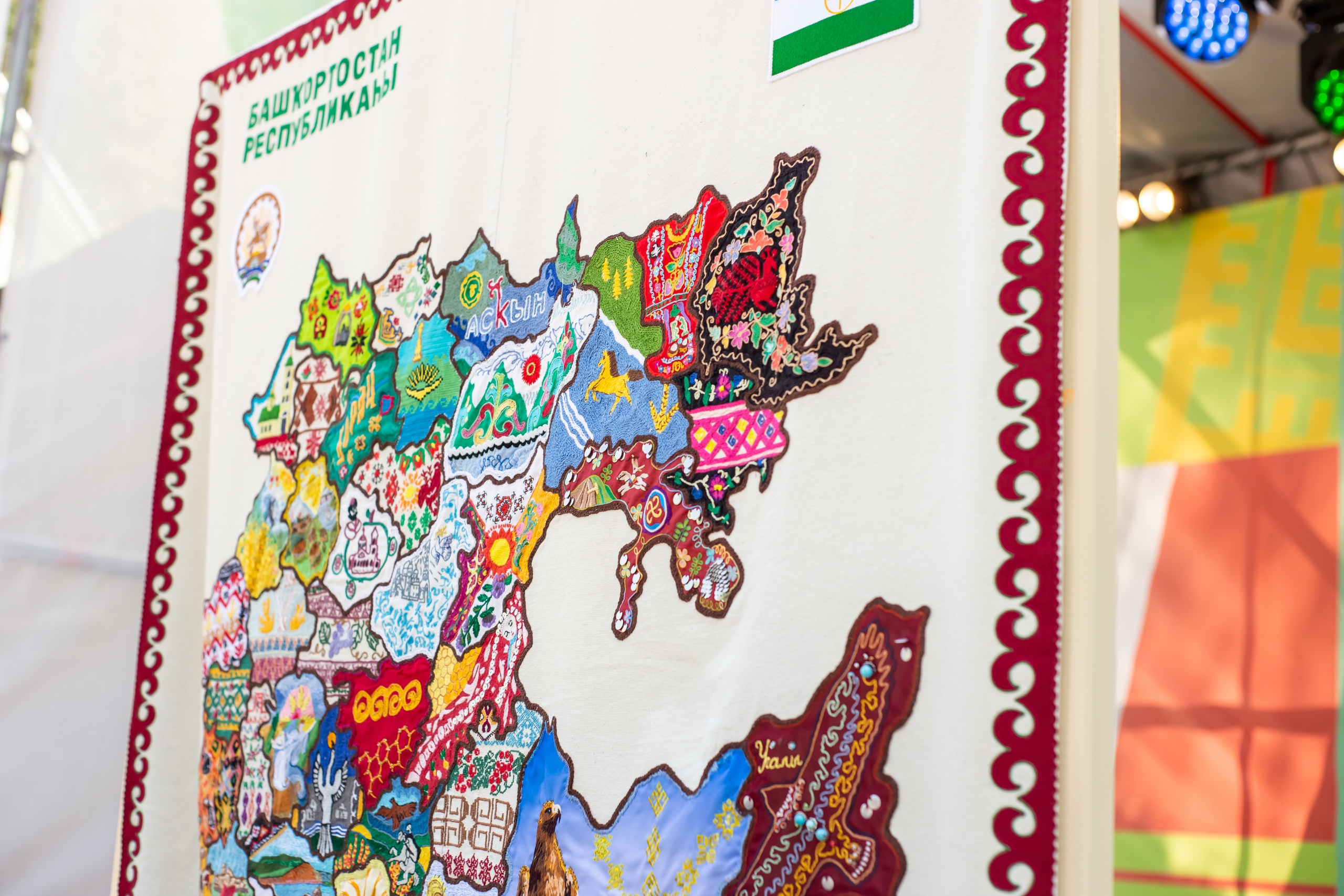 «Уникальность башкирской карты в том, что она вышита единым полотном. Сначала сделали границы районов, потом заполняли сюжетно-композиционными картинками, которые были предоставлены муниципалитетами. Каждый район сам разрабатывал, как он будет выглядеть на этой карте. Хотелось бы, чтобы этот проект стал значимым не только как материальное достояние республики, но еще привел к возрождению интереса у молодого поколения к традициям вышивки», – сказала заведующая отделом межрегионального и международного сотрудничества РЦНТ Зарина Хасанова.
