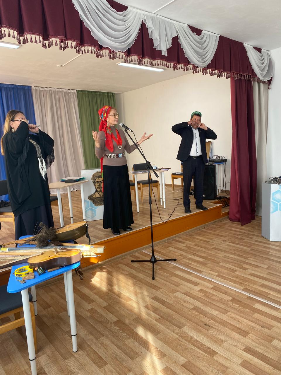 В. Обоюкова познакомила детей с этнической музыкой якутов как о воспитательном средстве фольклора в образовательной среде и исполнила перед учащимися мелодии на якутском инструменте хомусе, также провела обучающие упражнения, что очень заинтересовало детей. Р. Султангареева провела мастер-класс  по изучению эпоса «Урал-батыр» с включением учащихся в игру. Н. Хуббитдинова ознакомила детей и учителей с программой организации Школы сэсэнов в образовательном учреждении.
