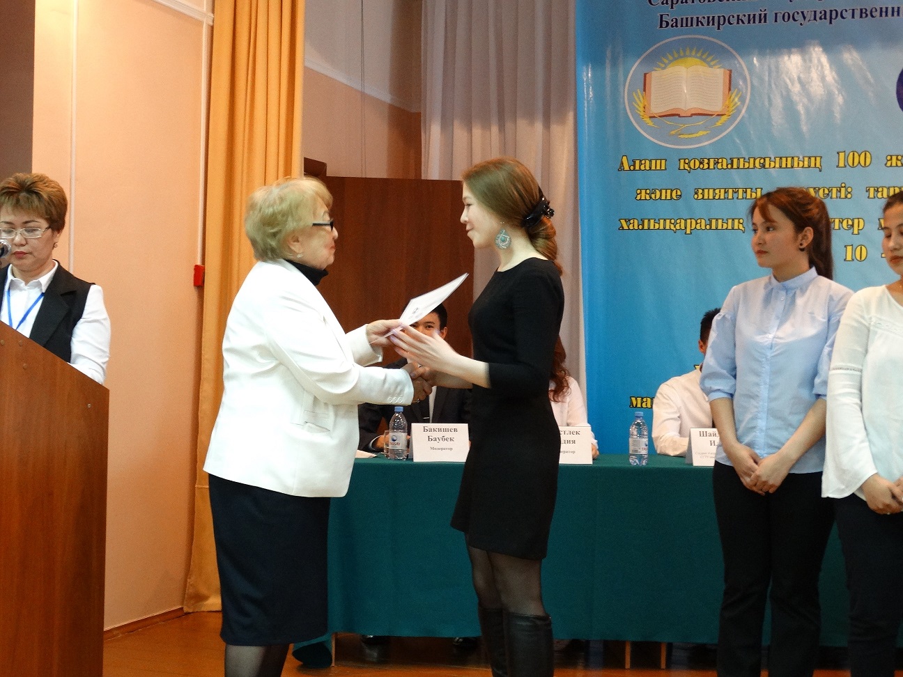 На пленарном заседании  выступила студентка 2 курса ИФОМК Рушана  Самситова с докладом на тему «Концепты «душа» и «сердце» в башкирских народных и английских пословицах и поговорках» (научн. Руководитель  к.ф.н., доцент Н.В. Семенова). Научная работа Рушаны    признана лучшей из 362 представленных на конференции докладов.  Она удостоена диплома I степени.  В  конференции также участвовали студенты и магистранты Саратовского государственного технического университета имени Ю.А. Гагарина, Актюбинского регионального государственного университета им. К. Жубанова, Актюбинского университета им. С. Баишева и др.