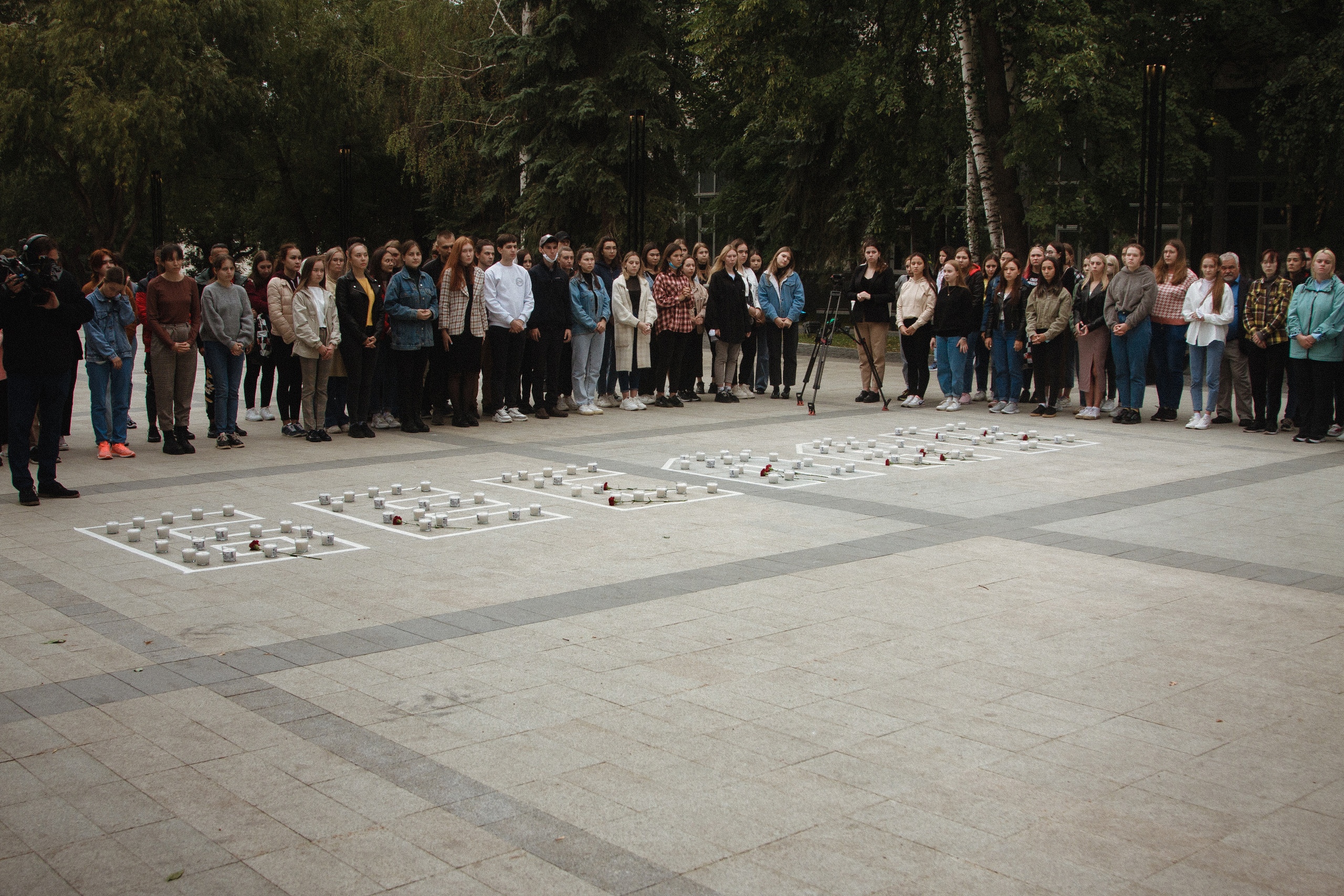 Студенты 1 курса совместно с преподавателями зажгли свечи в знак скорби, почтили память погибших минутой молчания.