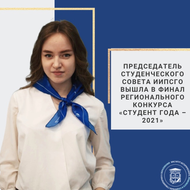 Дарья Косачева (2 курс ИИПСГО) – II место в номинации «Председатель студенческого совета года»;