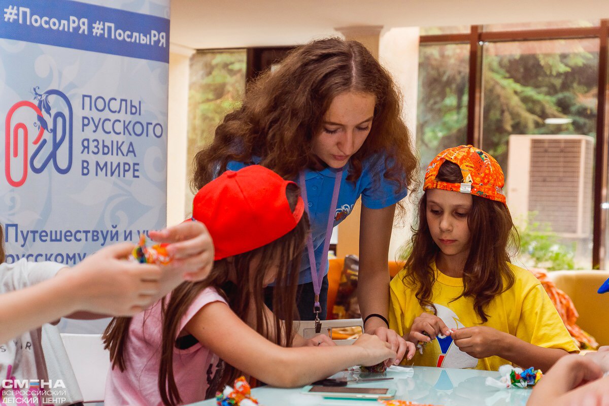 6 июня, День русского языка, для 1,5 тысяч школьников ВДЦ «Смена» начался тематической зарядкой с элементами русского народного танца, которую провели волонтёры. Также послы русского языка организовали с отдыхающими школьниками  интеллектуальные игры «Диалоги на русском», мастер-класс по изготовлению русской народной куклы «Колокольчик».