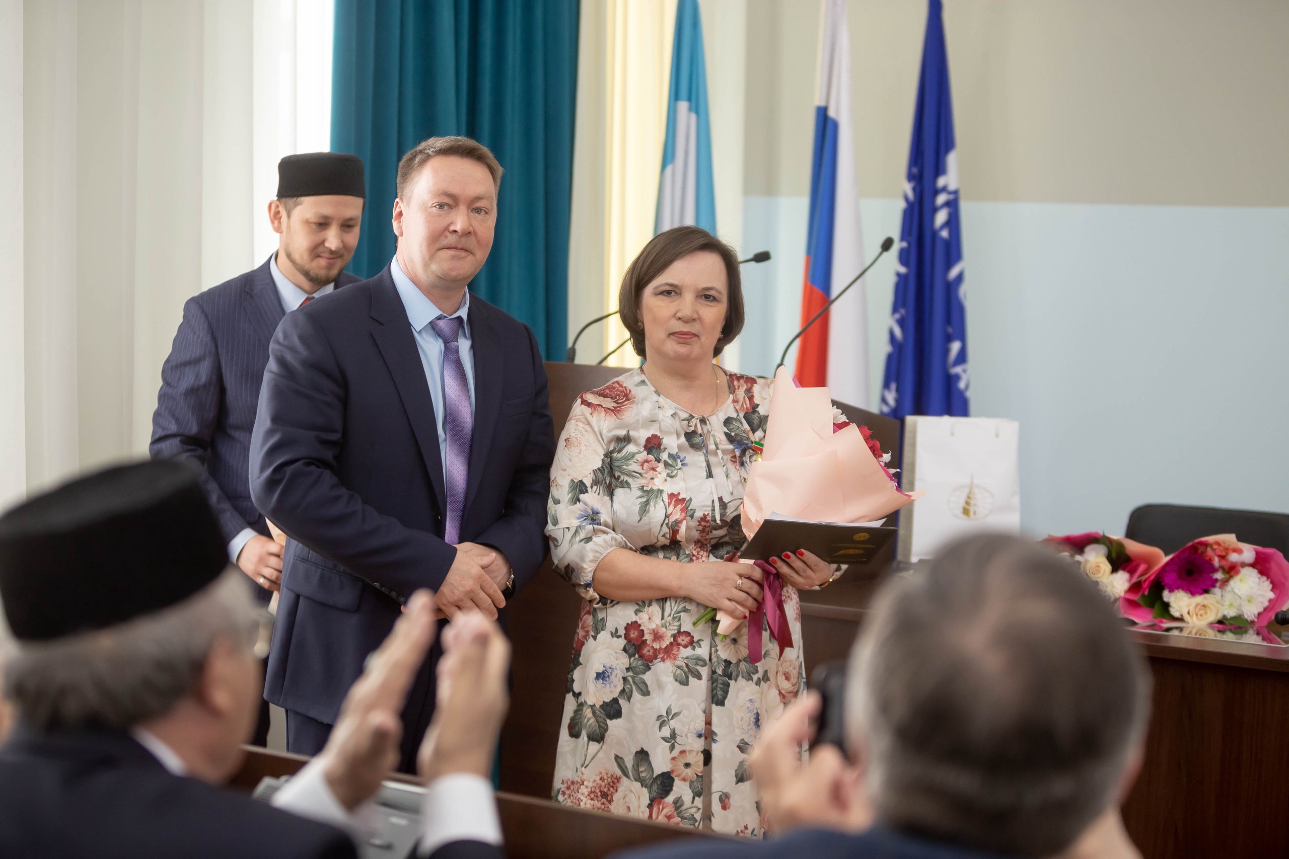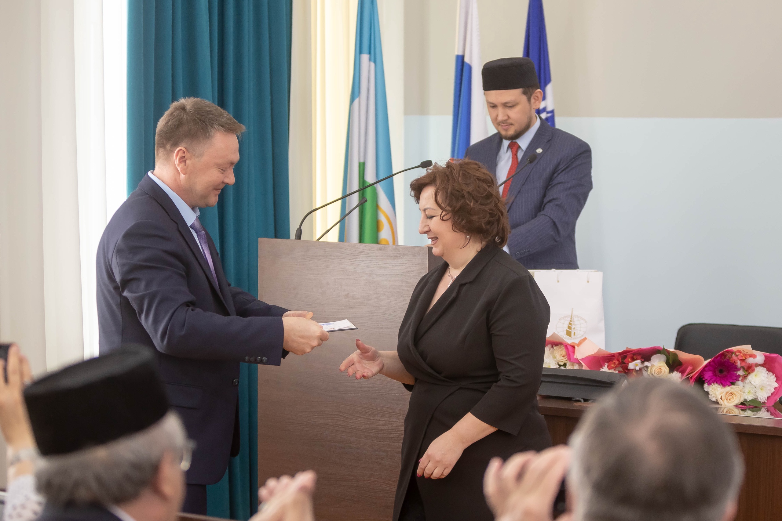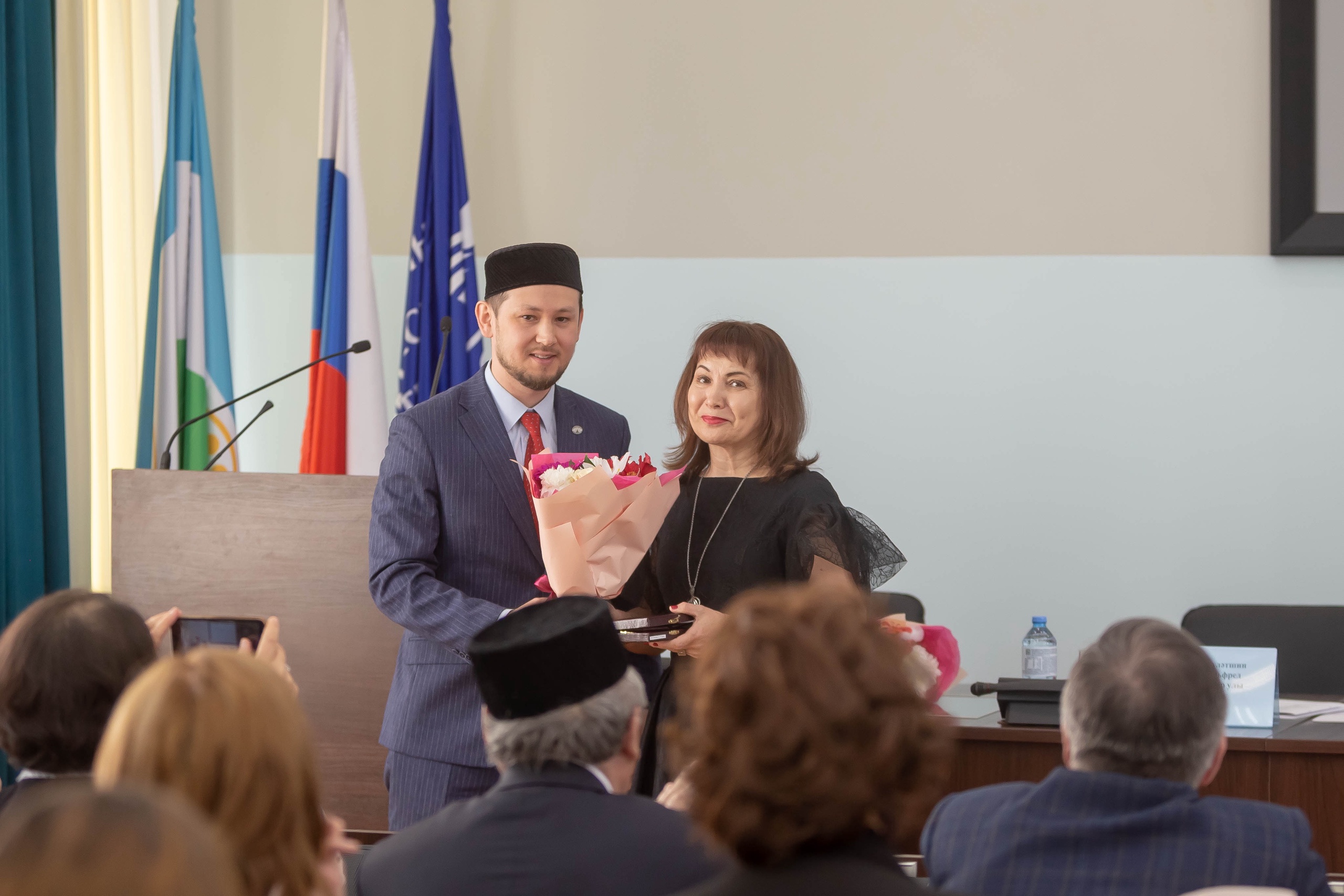 Заместитель постоянного представителя Республики Татарстан в Республике Башкортостан М.З. Валиев и представитель Всемирного конгресса татар в Республике Башкортостан А.А. Давлетшин также поздравили собравшихся с 30-летним юбилеем кафедры. После они вручили ведомственные награды Министерства образования и науки Татарстана и Всемирного конгресса татар сотрудникам кафедры татарского языка ИФОМК И.С. Насипову, А.Г. Халиуллиной, Н.У. Халиуллиной, Ф.Ф. Фатхтдинову, А.А. Нугумановой.