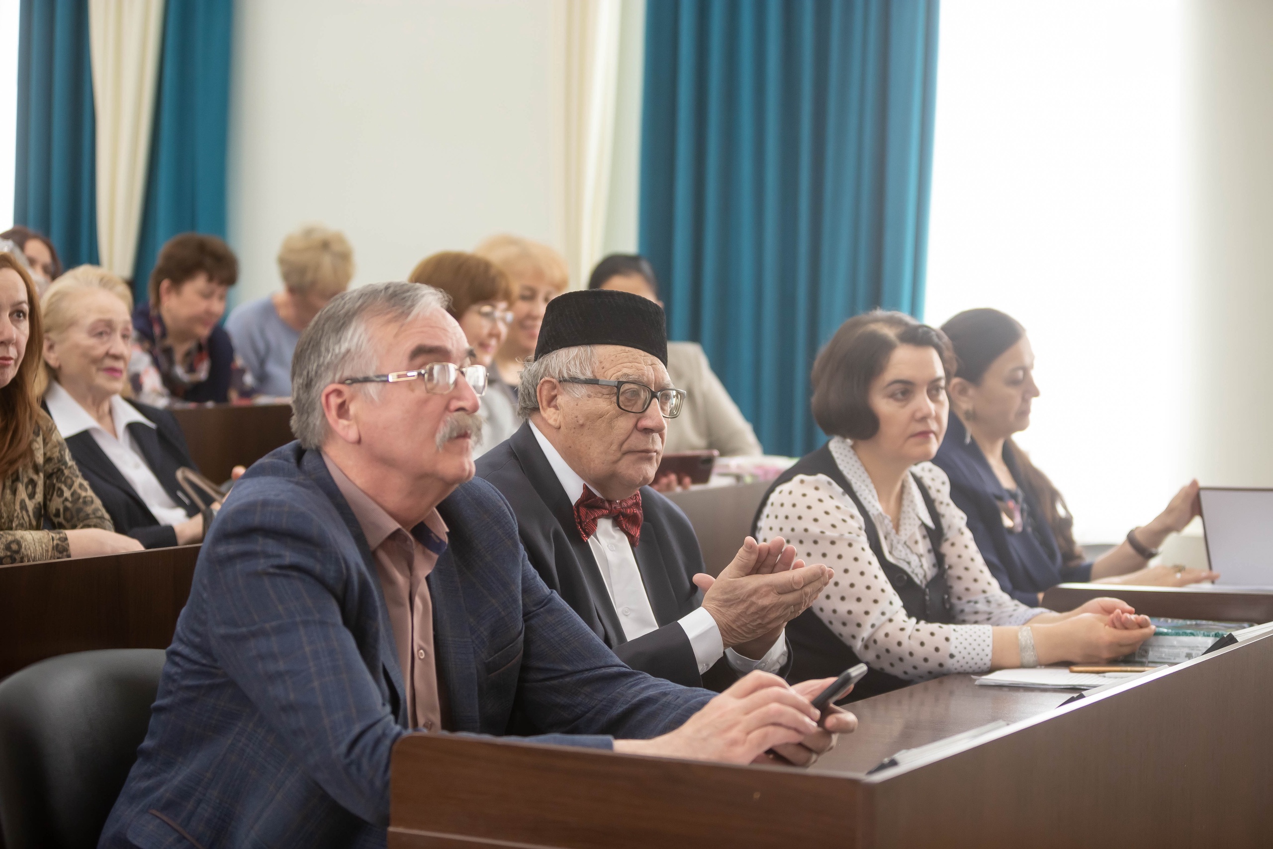 Далее были заслушаны онлайн-выступления и телеграммы с поздравлениями в адрес вуза и кафедры от д.филол.н., профессора, члена-корреспондента РАН, заведующего отделом урало-алтайских языков Института языкознания РАН А.В. Дыбо, д.филол.н., профессора, председателя Российского комитета тюркологов, главного редактора научного журнала «Российская тюркология» И.В. Кормушина, Председателя комитета по образованию, науке и молодежной политике Совета крымских татар при Главе Республики Крым Л.С. Селендели, доктора филологии, профессора Егейского университета (г. Измир, Туреция) У. Мустафы, коллектива кафедры казахской филологии Актюбинского регионального университета им. К. Жубанова, профессора кафедры казахской литературы КарГУ имени Академика Е.А. Букетова Ж.Ж. Жарылгапова, директора Институт языков и культуры народов Северо-Востока РФ Северо-Восточного федерального университета им. М.К. Аммосова Г.Г. Торотоева, а также выпускника магистратуры 2021 года М.А. Сыдикова (Казахстан) и других.