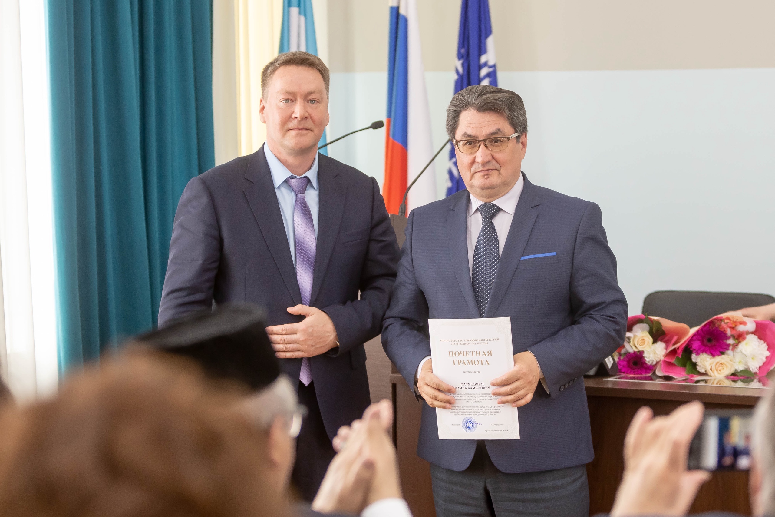По решению заседания кафедры И.С. Насипов вручил диплом Аксакала кафедры Радифу Гаташу (уроженцу Кушнаренковского района РБ), а также диплом Почётного профессора К.М. Миннуллину (уроженцу Илишевского района РБ).