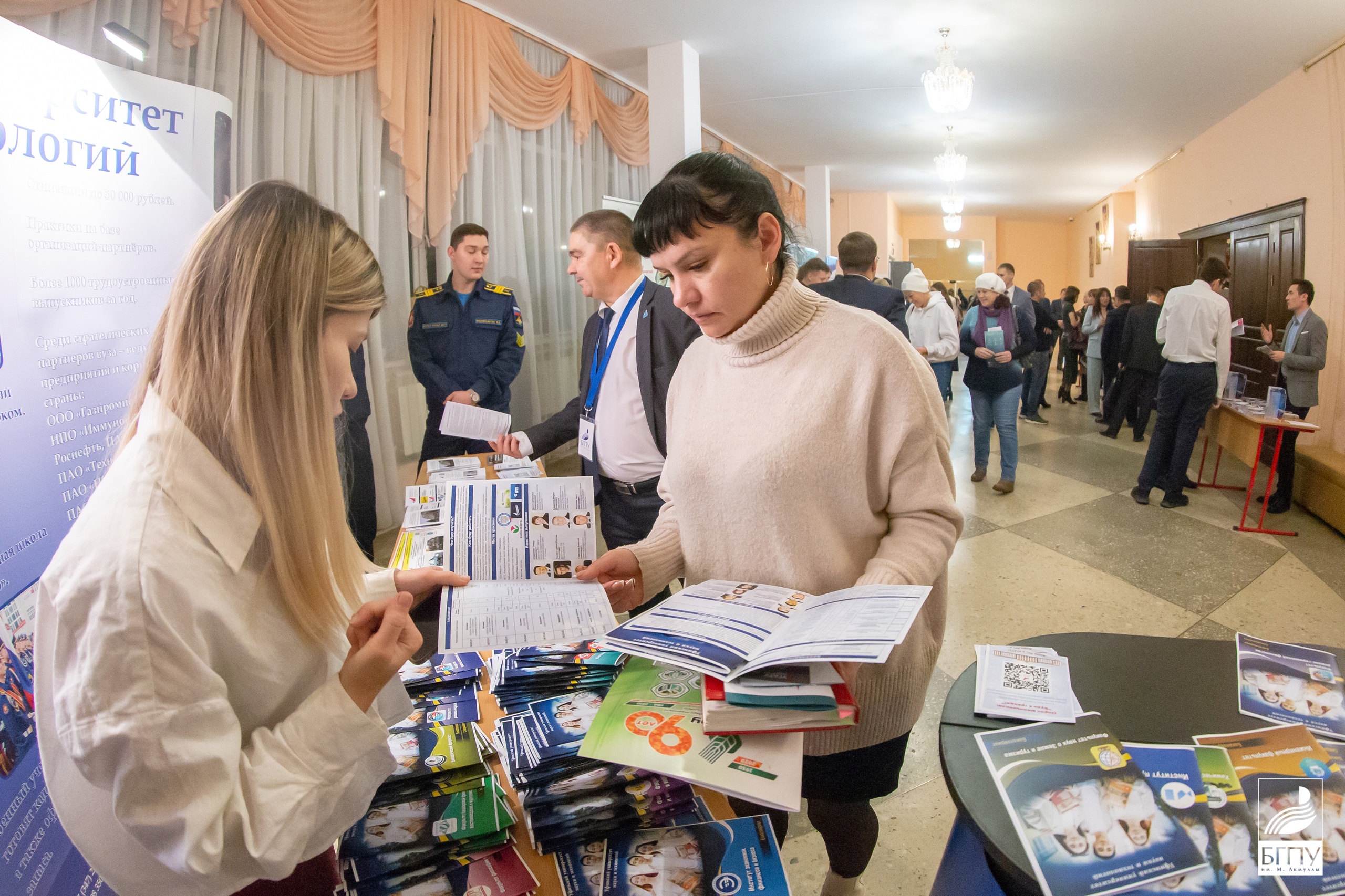 На выставочных стендах уфимских вузов: УГНТУ, УУНиТ, БГПУ им.М. Акмуллы,  БГАУ, БГМУ, БАГСУ, УГИИ, УЮИ МВД и Финансового университета была представлена информация о вузах, направлениях и профилях подготовки.  Школьники,  родители, педагоги  могли пообщаться с представителями вузов, со студентами.