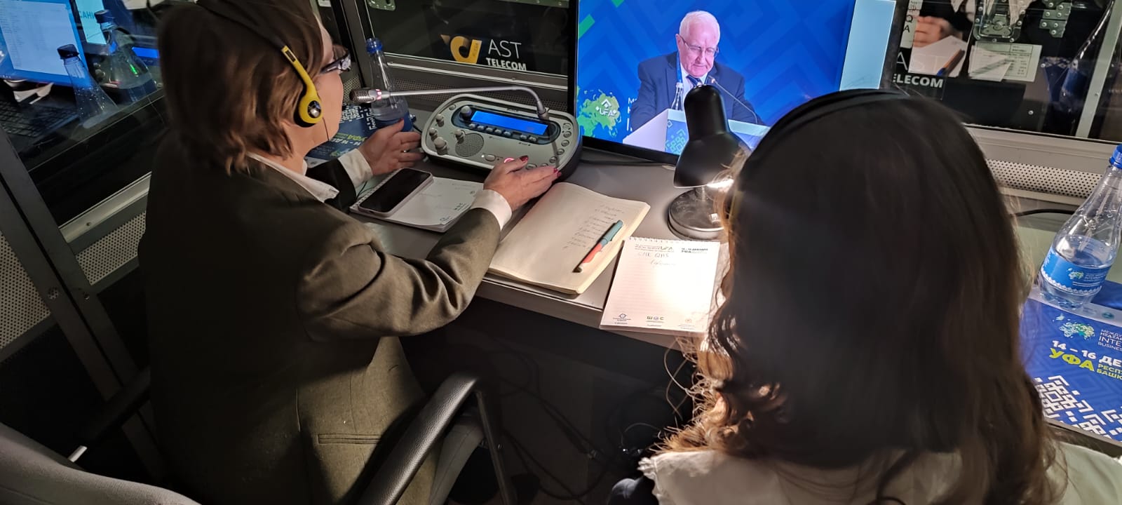 14 -16 декабря 2022 г. в Уфе состоялся XV юбилейный форум «Международная неделя бизнеса», синхронный перевод, на котором обеспечивался студентами и выпускниками ИФОМК.