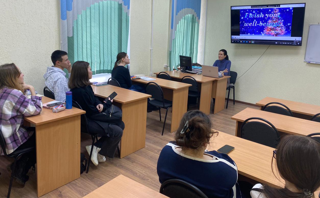 На 2 и 3 курсах состоялись мероприятия «Новогодние традиции в странах изучаемых языков» и «Новый год – время добра и семейных ценностей». Преподаватели и студенты обсудили проблему сохранения семейных традиций как в России, так и за рубежом, поговорили о важности общечеловеческих ценностей.