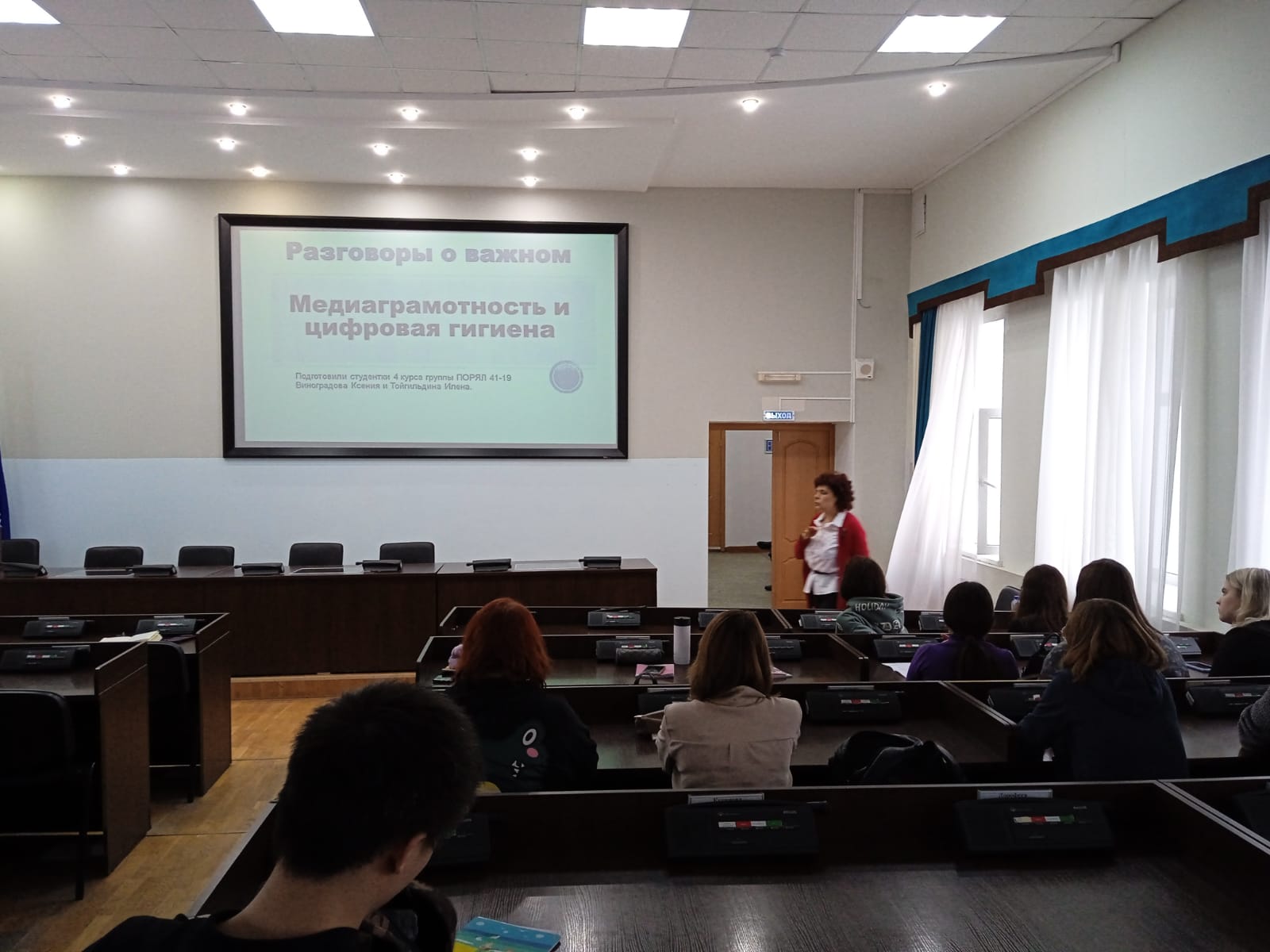 23 января 2023 года состоялся кураторский час на тему  «Медиаграмотность и цифровая гигиена», проведенный в рамках всероссийского  проекта «Разговоры о важном» для  студентами 1 курса ПОРЯЛ.  Занятие было подготовлено и проведено студентами 4 курса направления подготовки «Русский язык и литература» И.  Тойгильдиной и К. Виноградовой под руководством заведующей кафедрой русской литературы Ю.А. Шаниной. Студенты рассказали первокурсникам о правилах цифрового этикета, базовых принципах кибербезопасности, а также поделились важной информацией об Интернет-ресурсах, необходимых для подготовки к занятиям по филологическим дисциплинам, написания научных статей и курсовых работ. С помощью QR-кода ведущие передали участникам встречи  материалы, ссылки, которые подобрали по данной теме.