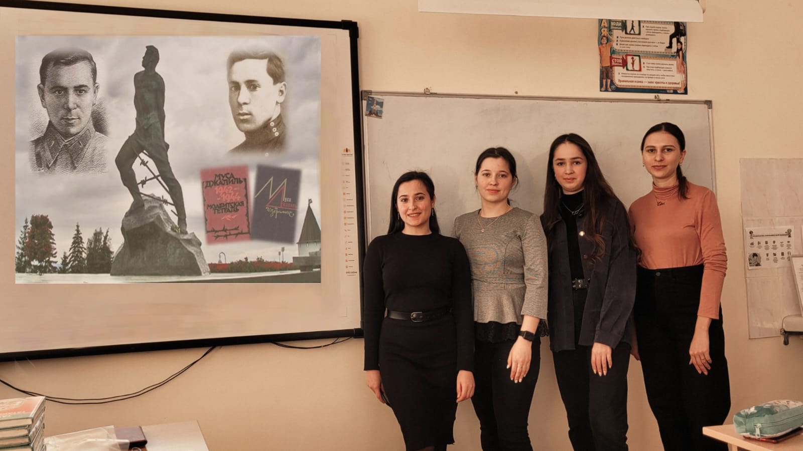 В МАОУ "Татарской гимназии № 65" г. Уфы прошло мероприятие «Имя твое словно песня осталась…», посвященное 117-летию со дня рождения поэта-героя Мусы Джалиля. Его целью было ознакомление учащихся с жизнью и творчеством поэта, повышение интереса к поэтическим произведениям, воспитание чувства патриотизма и гордости за Родину. В мероприятии приняли учащиеся профильных психолого-педагогических классов. Студенты-практиканты группы ПОТЯ_АНЯ-41-19 рассказали об интересных фактах из жизни поэта, его непростых детских и юношеских годах, литературной деятельности. Школьники узнали о суровых фронтовых буднях поэта, о страшном времени, проведенном в фашистских застенках концлагерей, в которых единственным оружием Мусы Джалиля были его стихи. Также учащиеся узнали о подвиге поэта-героя и об автобиографичной книге стихов «Моабитская тетрадь», за которую Муса Джалиль был удостоен Ленинской премии.