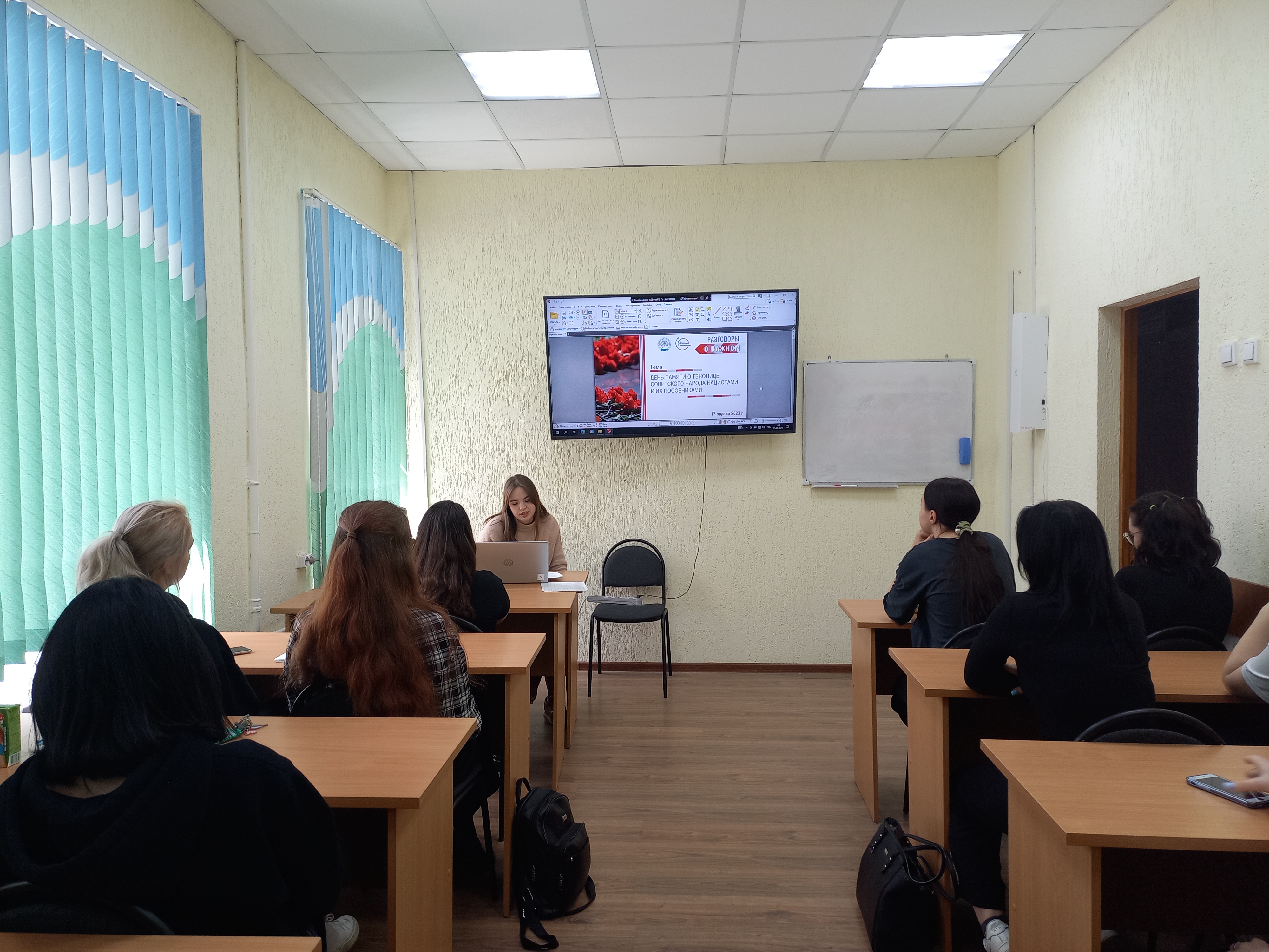 18 и 20 апреля 2023 года для студентов 1 курса, обучающихся по направлению 45.03.02 Лингвистика, направленность «Перевод и переводоведение» был проведён кураторский час на тему: «День памяти о геноциде советского народа нацистами и их пособниками».