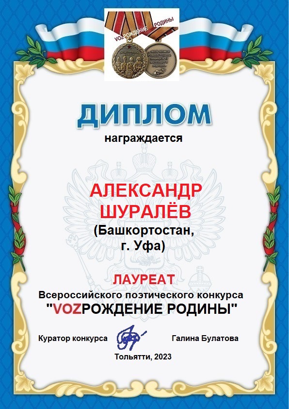 Профессор кафедры русской литературы БГПУ им. М.Акмуллы, член Союза писателей России и Башкортостана А.М. Шуралёв удостоен звания лауреата конкурса за подборку, в которую вошли стихотворения «Баллада о солнце», «Народная песня», «Дар отавы», «Россия».