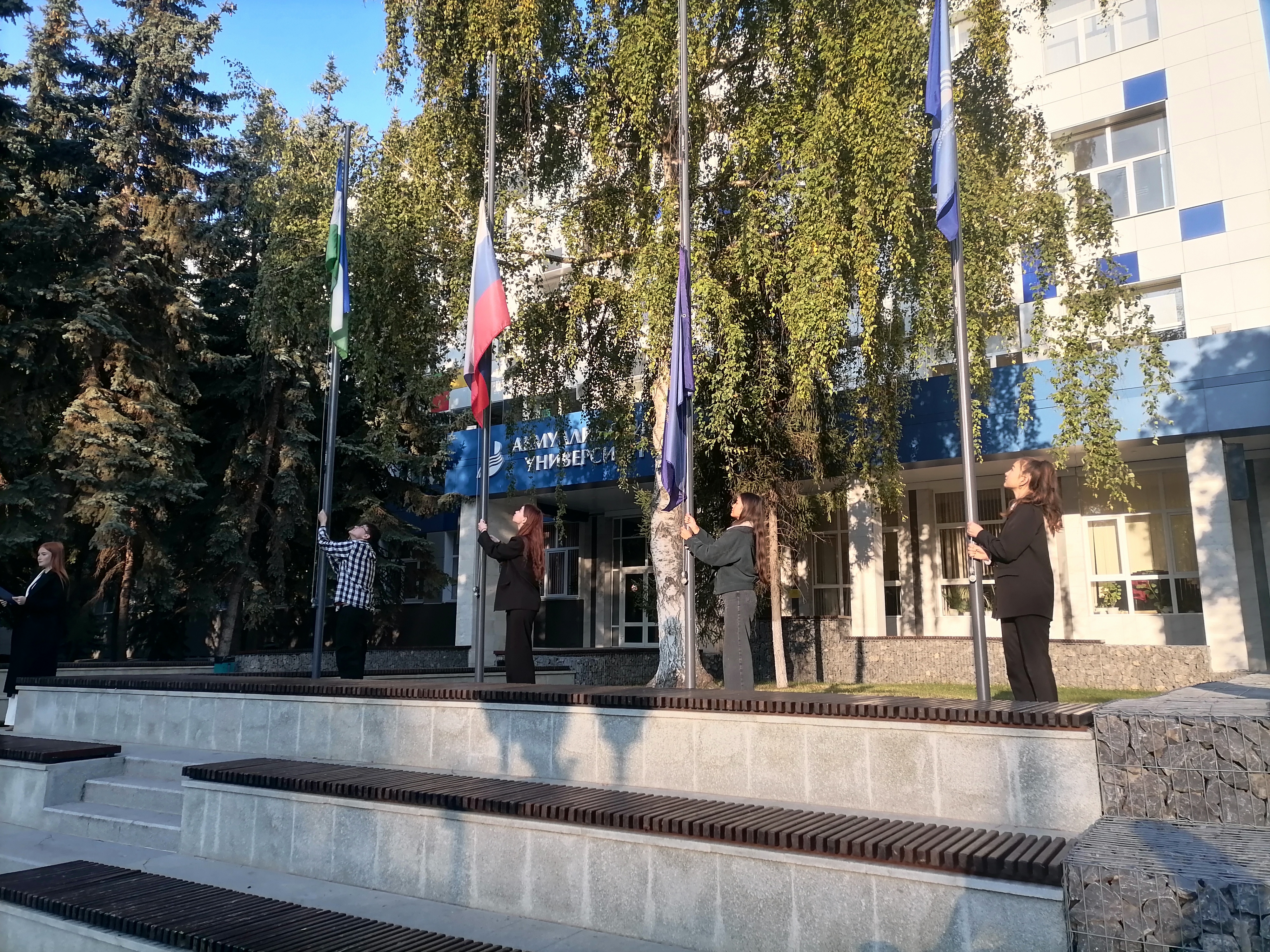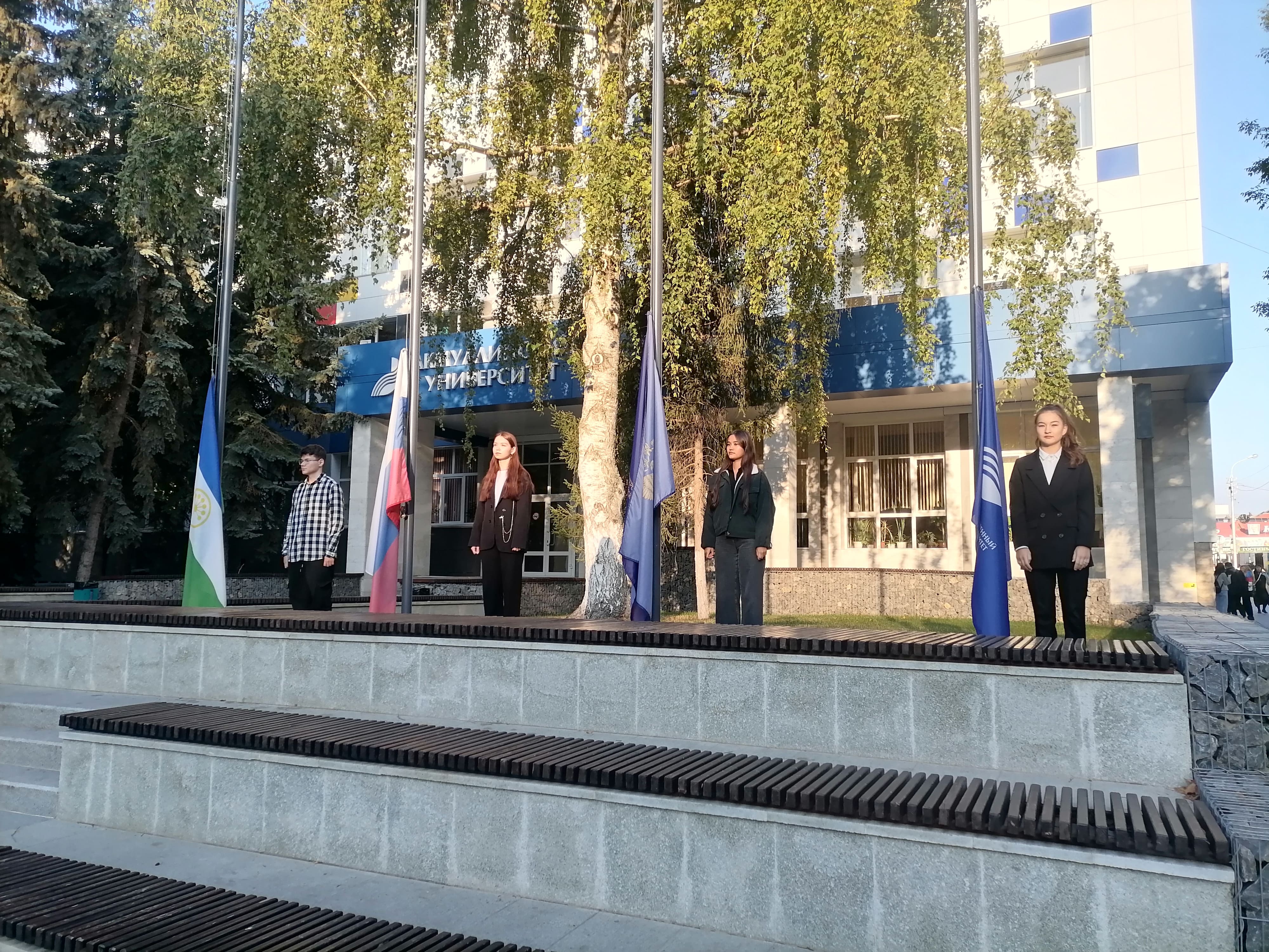 По традиции неделя начинается с церемонии поднятия флагов перед зданием административного корпуса Акмуллинского университета. Студенты первого курса удостоились чести поднять флаг Российской Федерации, Республики Башкортостан, Министерства просвещения и БГПУ им. М. Акмуллы. Абубакиров Равиль, Ерофеева Виктория, Ергизова Дарина, Кутлугужина Анита являются победителями и призерами регионального этапа Всероссийской олимпиады школьников, Акмуллинской олимпиады.