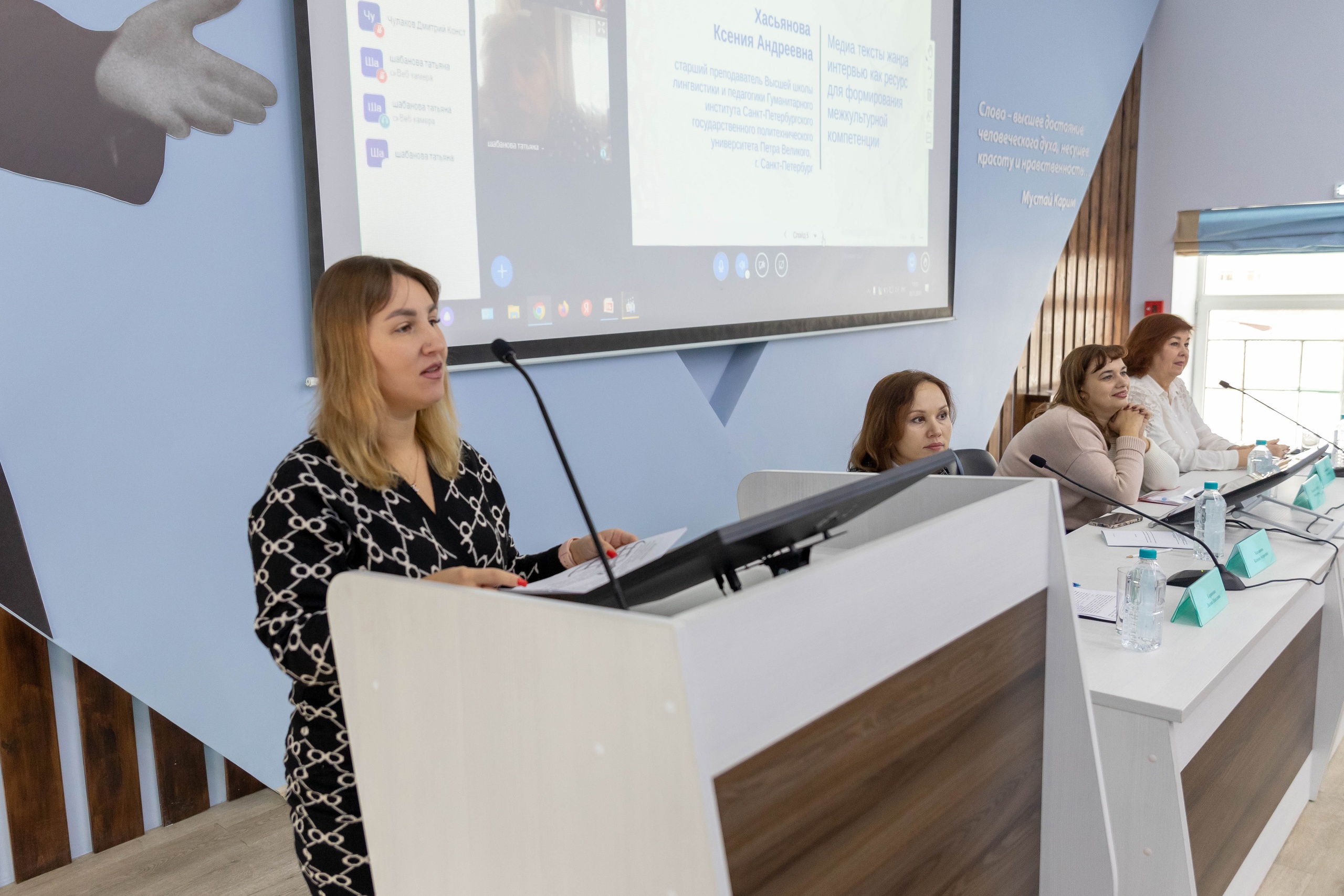 Пленарное заседание конференции прошло в очно-дистанционном формате. Модератором выступила кандидат филологических наук, доцент кафедры межкультурной коммуникации и перевода Лилия Каримова.